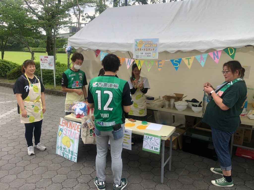 6月2日(日)明治安田J3リーグ第15節 FC琉球戦のホームゲーム会場にて「レモネードスタンド」を開催し、集まった収益金と募金、合わせて98,948円をレモネードスタンド普及協会に寄付させていただきました。