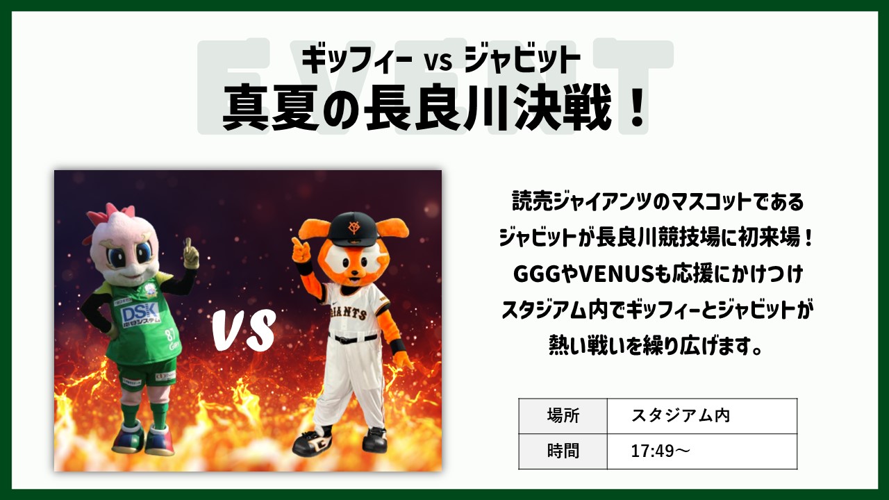 読売ジャイアンツコラボイベントを開催!マスコットの「ジャビット」、マスコットガールの「VENUS」が来場し、スタジアムを盛り上げます!FC岐阜×読売ジャイアンツコラボ企画