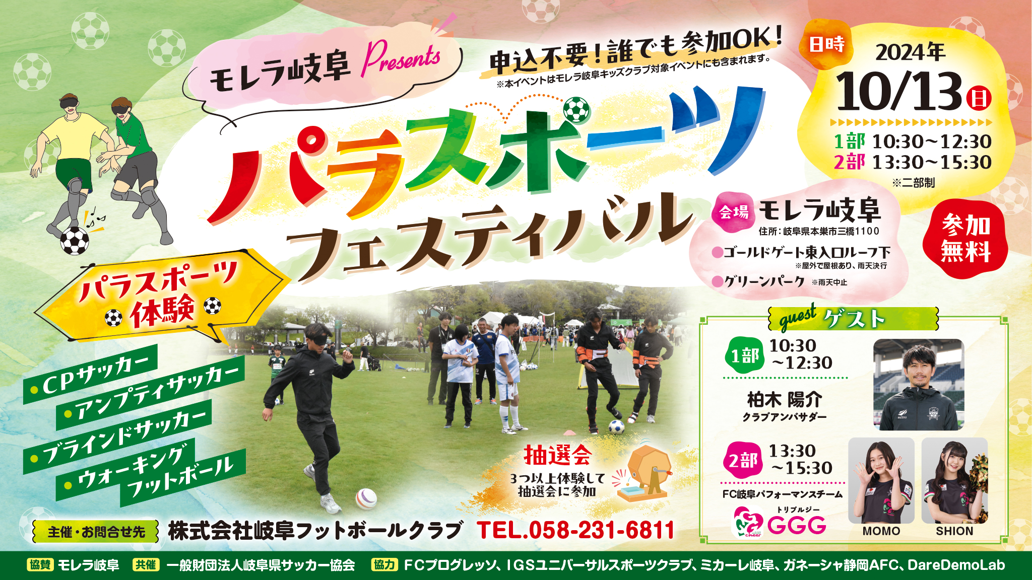 10月13日(日)にFC岐阜のパートナー企業である「モレラ岐阜(本巣市)」様のご協賛にて、モレラ岐阜Presentsパラスポーツフェスティバルby FC岐阜を開催します。
