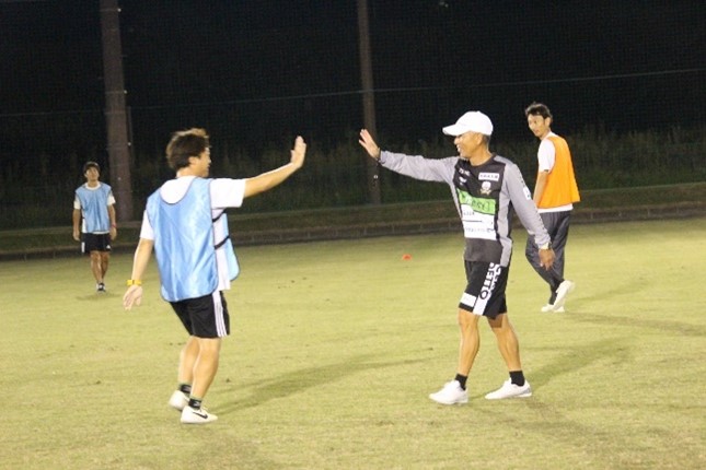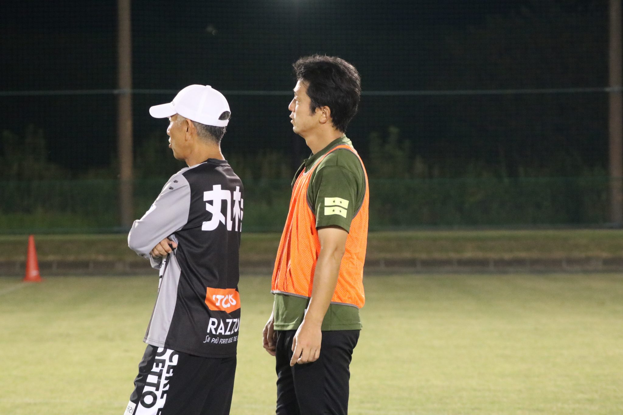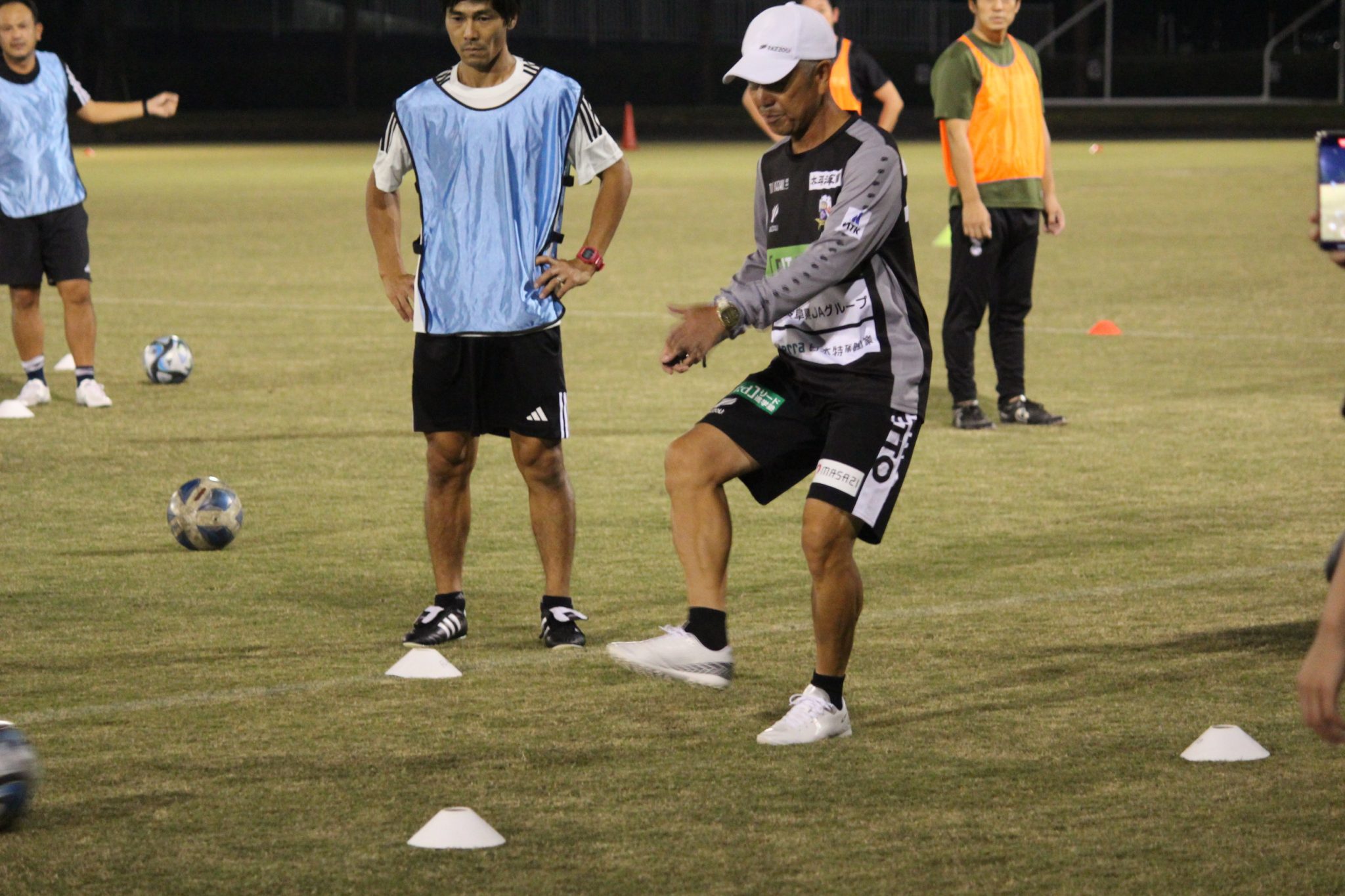 この練習の意図やトラップする位置など、子供たちへの指導方法などを交えながら行いました。