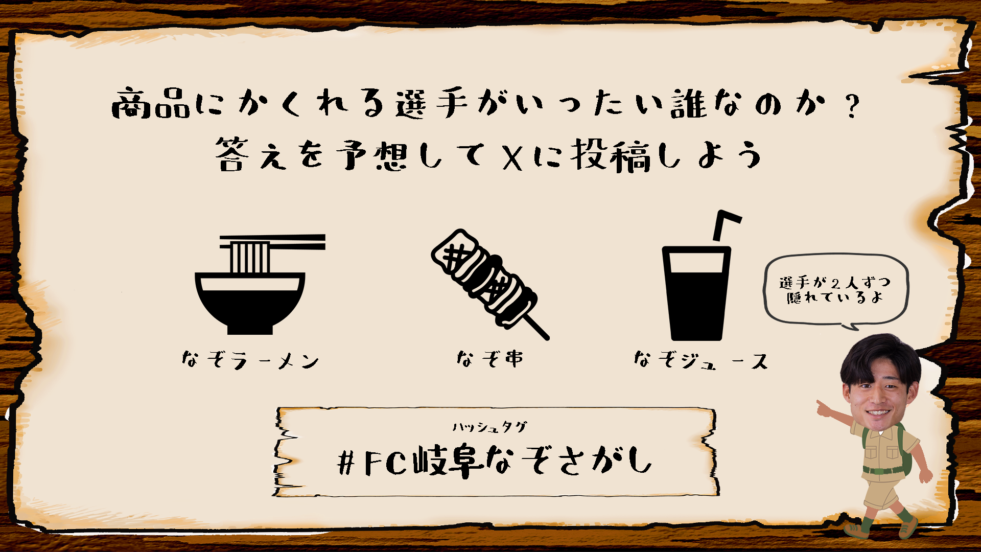 1つの商品に選手が2人隠れているよ!答えを予想してハッシュタグ[#FC岐阜なぞさがし]をつけてXに投稿しよう🥤