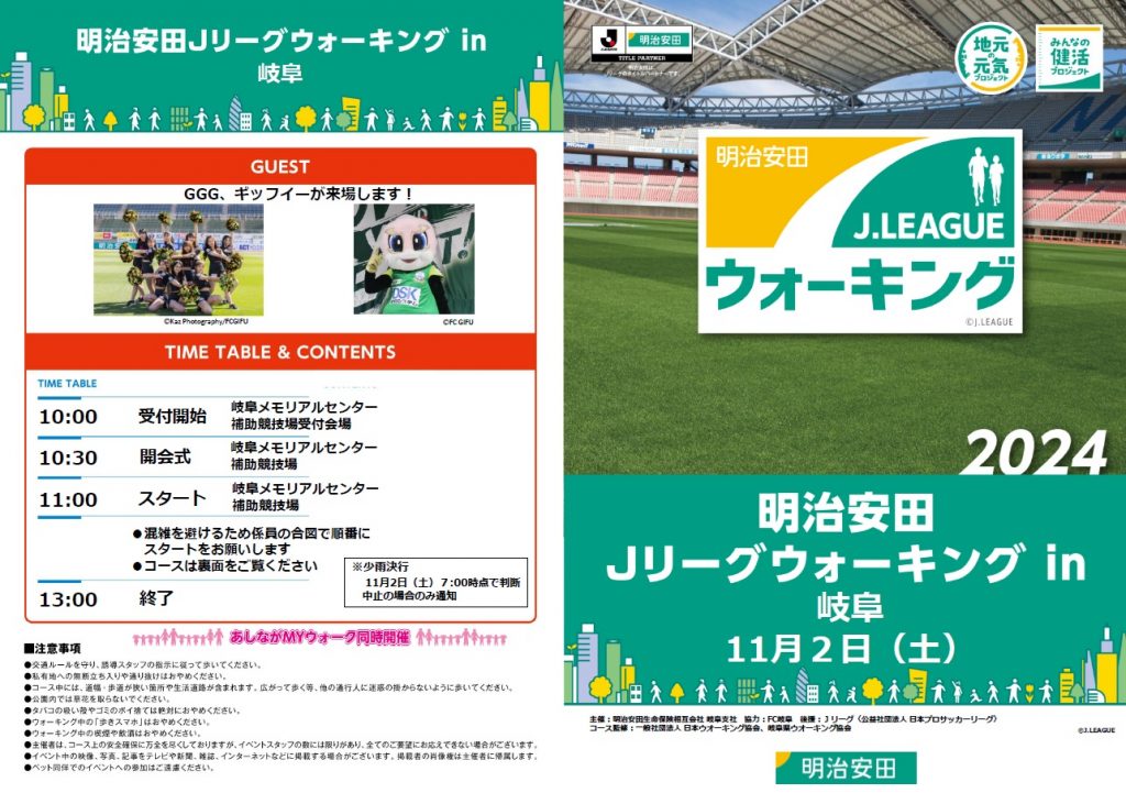11月2日(土)に開催を予定しておりました「明治安田Jリーグウォーキングin岐阜」は当日の悪天候が予想されるため、開催を中止させていただきます。
