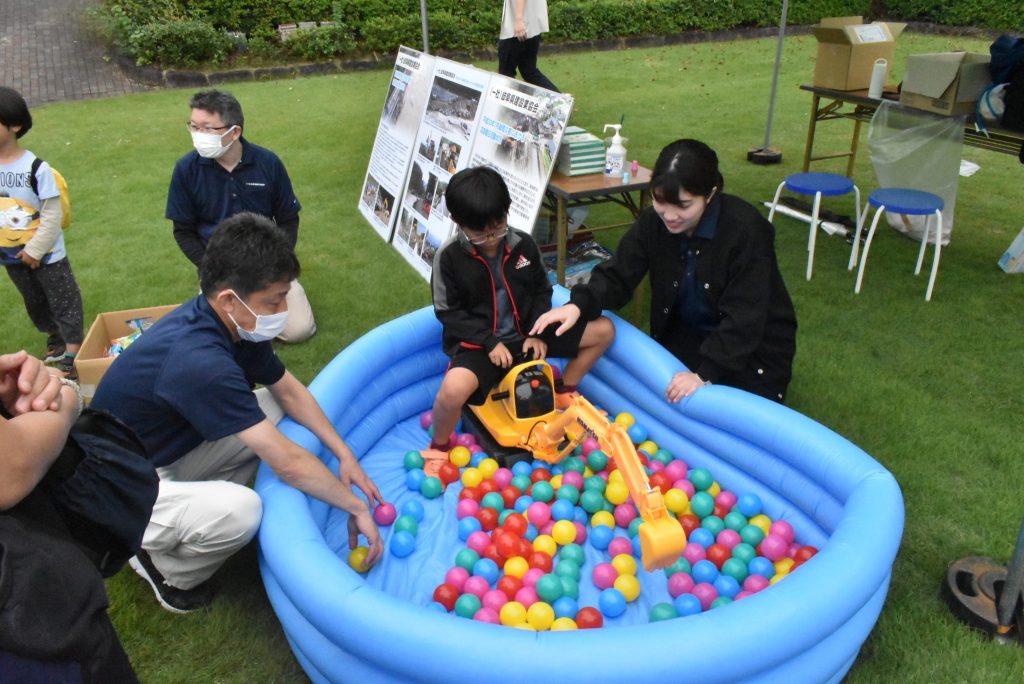 ミニバックホーでカラーボールすくいに挑戦しよう!