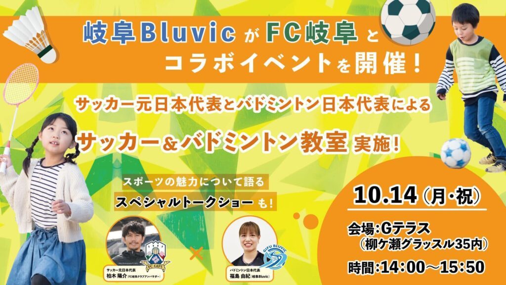 10/14(月・祝) 岐阜Bluvic×FC岐阜 サッカー&バドミントンイベント開催のお知らせ