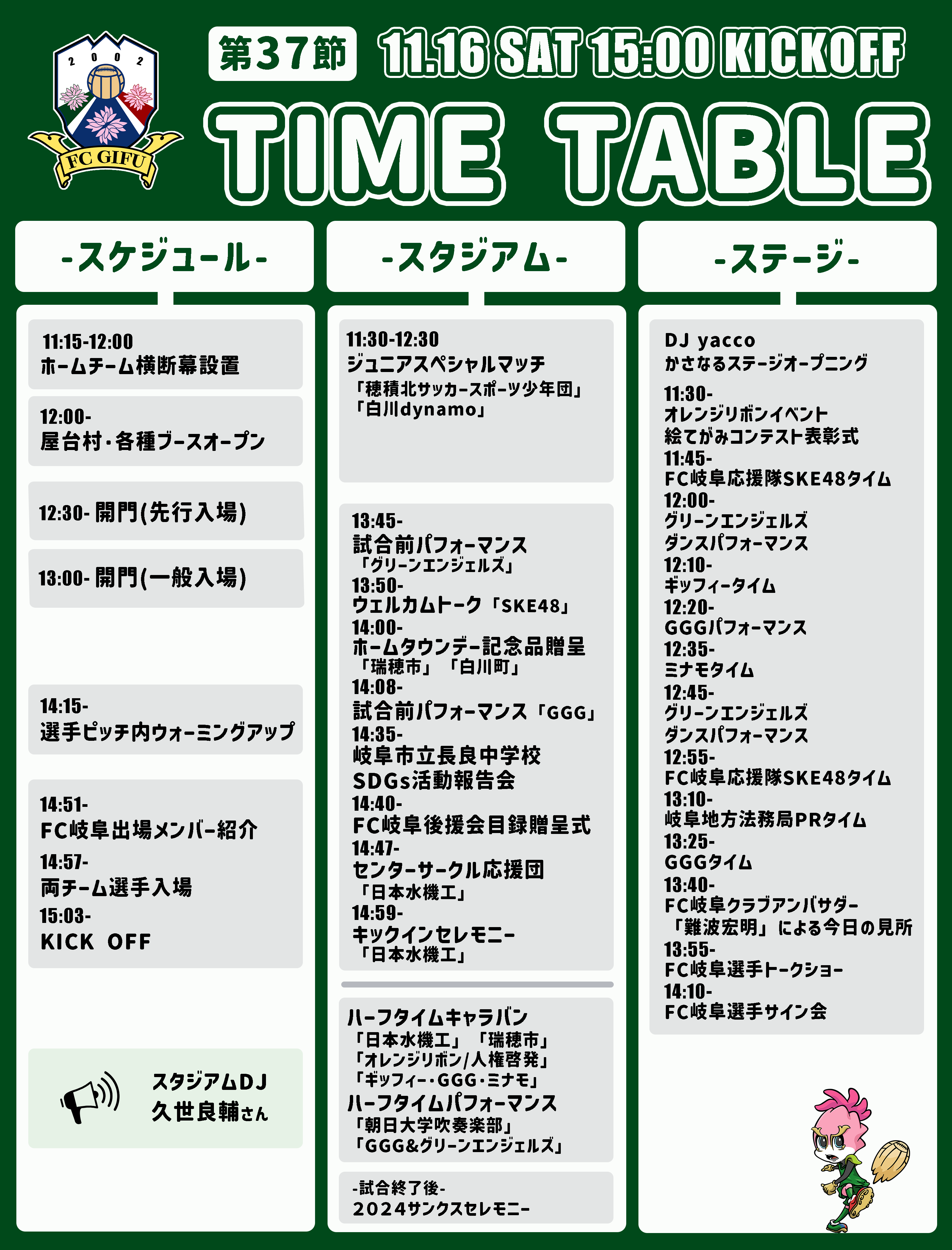 FC岐阜を支えてくださった全ての皆様に感謝の気持ちを込めて、試合終了後に2024サンクスセレモニーを開催します。