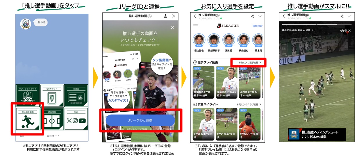 FC岐阜公式LINEのミニアプリにて、選手のプレー動画を再生できる「推し選手動画」サービスがスタート✨