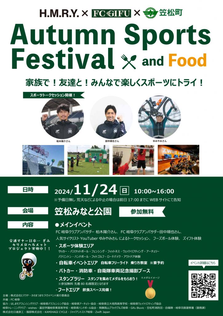11/24(日)笠松みなと公園「Autumn Sports Festival and Food」開催&「自転車乗り方教室」参加者募集のお知らせ