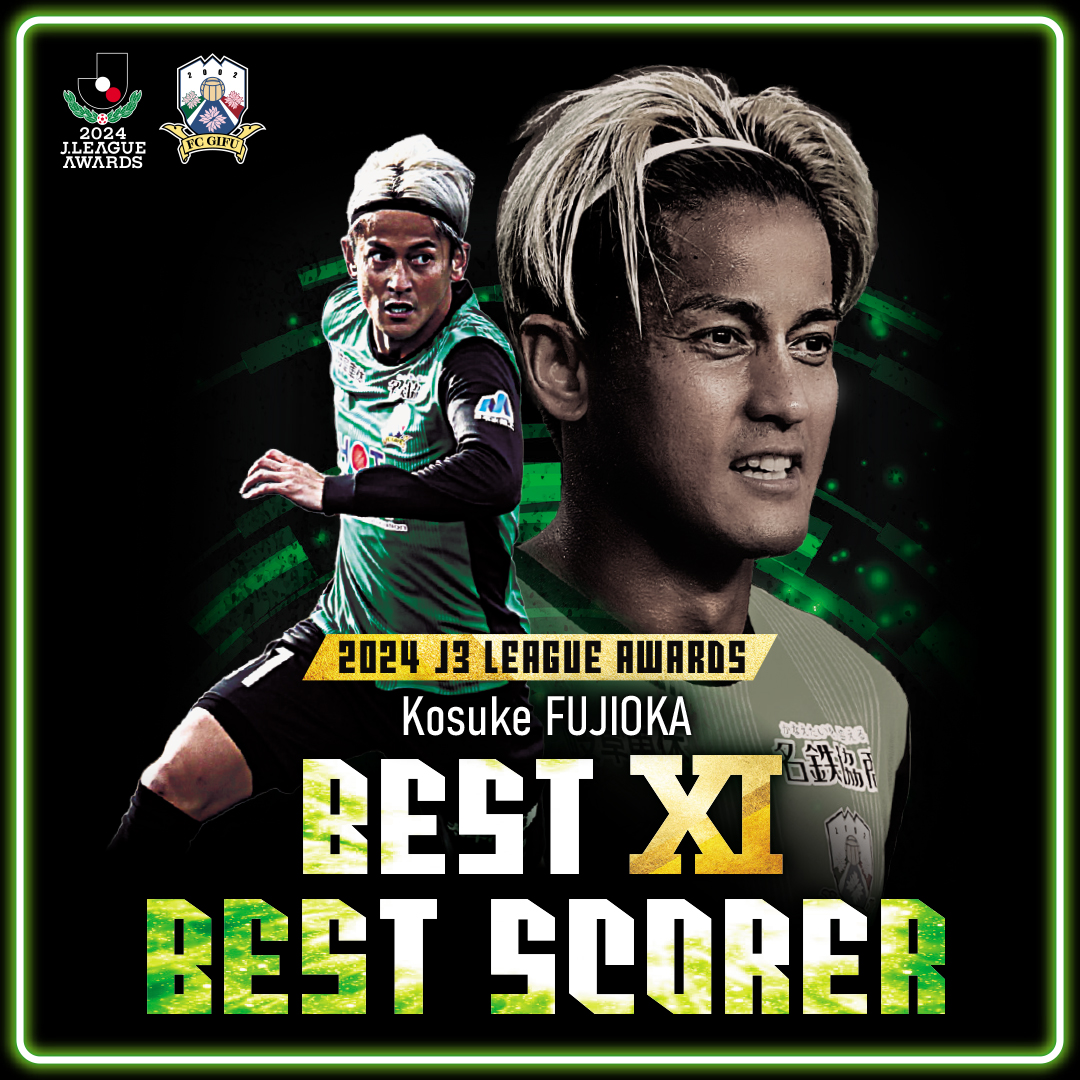 本日、2024 J3リーグアウォーズが開催され、藤岡浩介選手がベストイレブン、得点王を受賞しましたのでお知らせいたします。