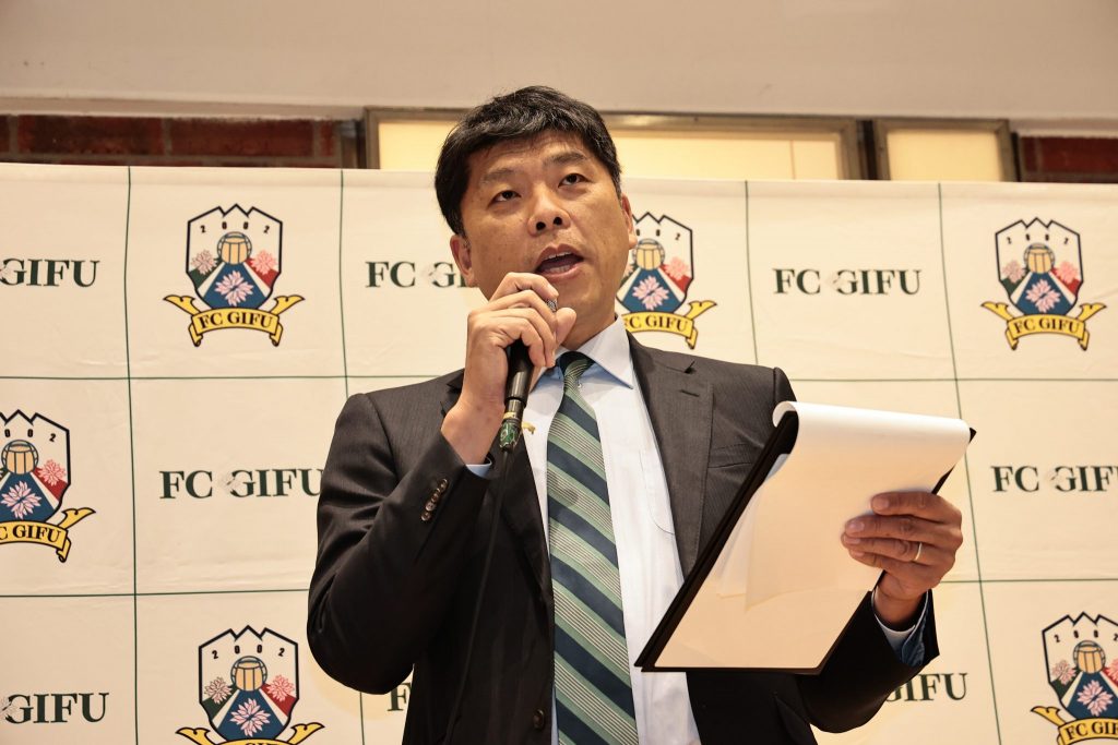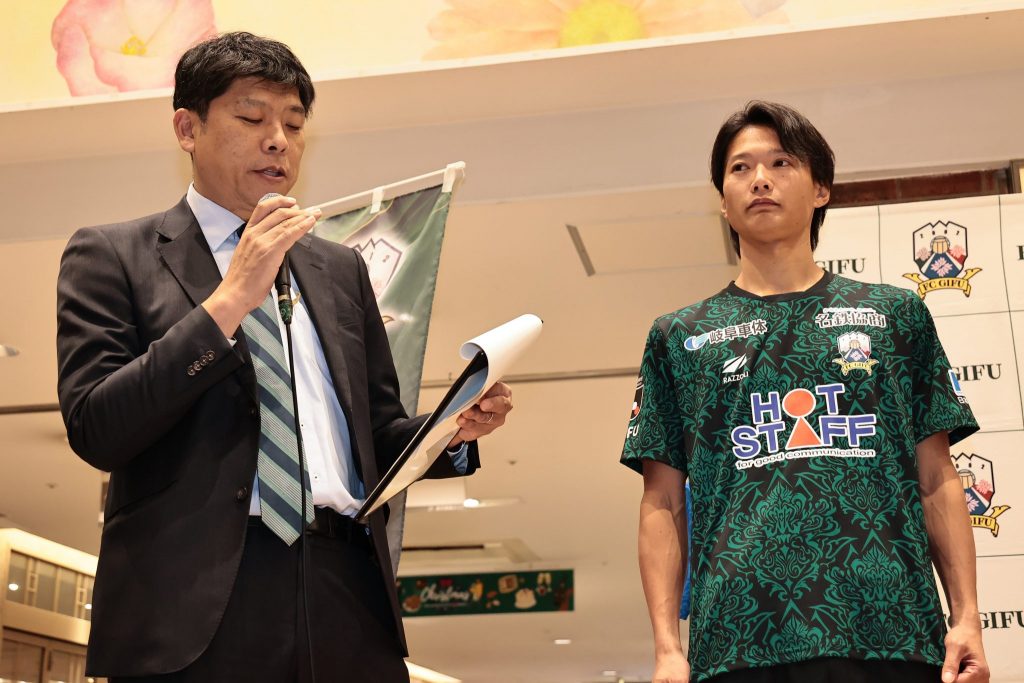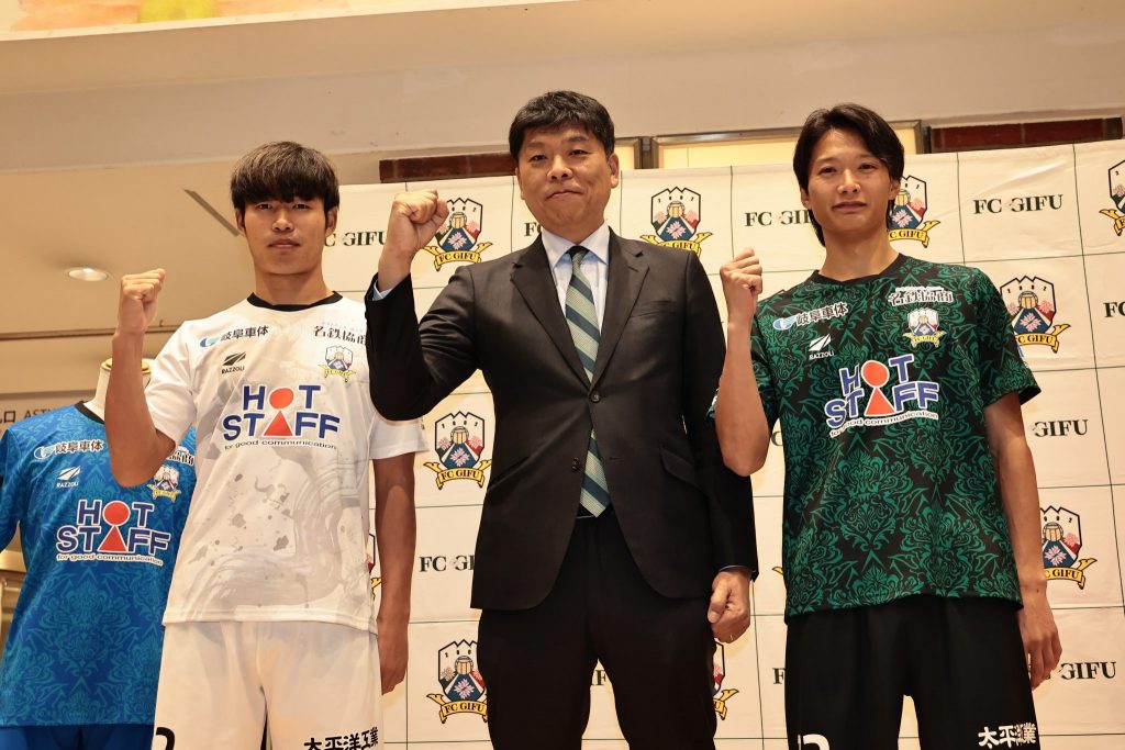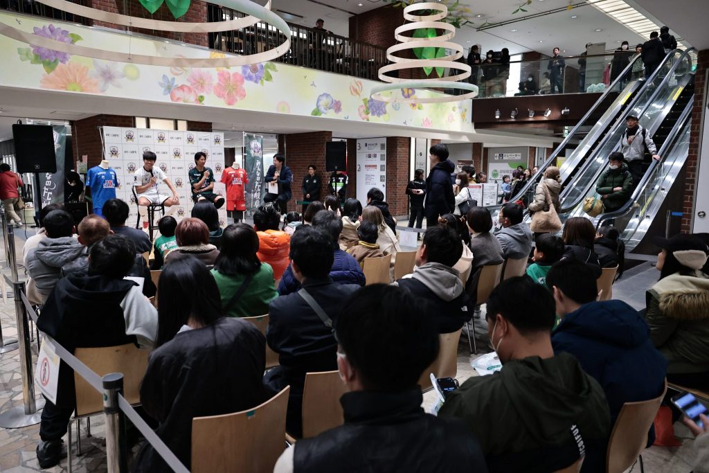 当日は選手着用ユニフォームが当たるガラポン抽選会や、ステージではFC岐阜応援マスコット「ミナモ」の契約更改、2025シーズンのユニフォーム発表会が行われました。