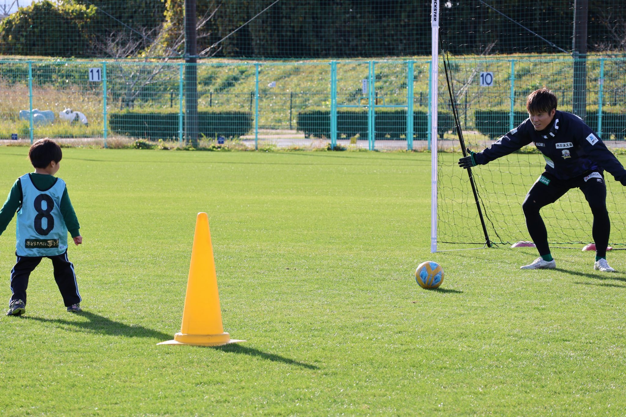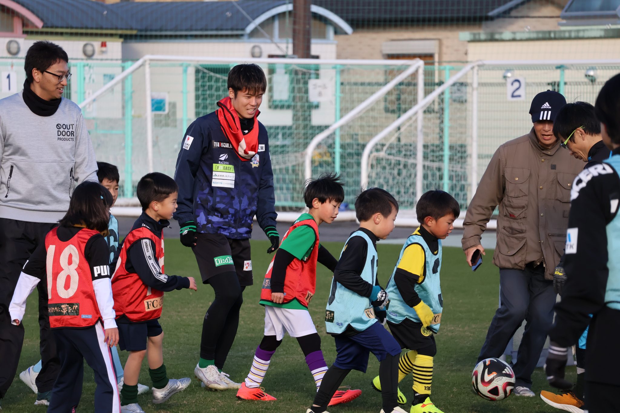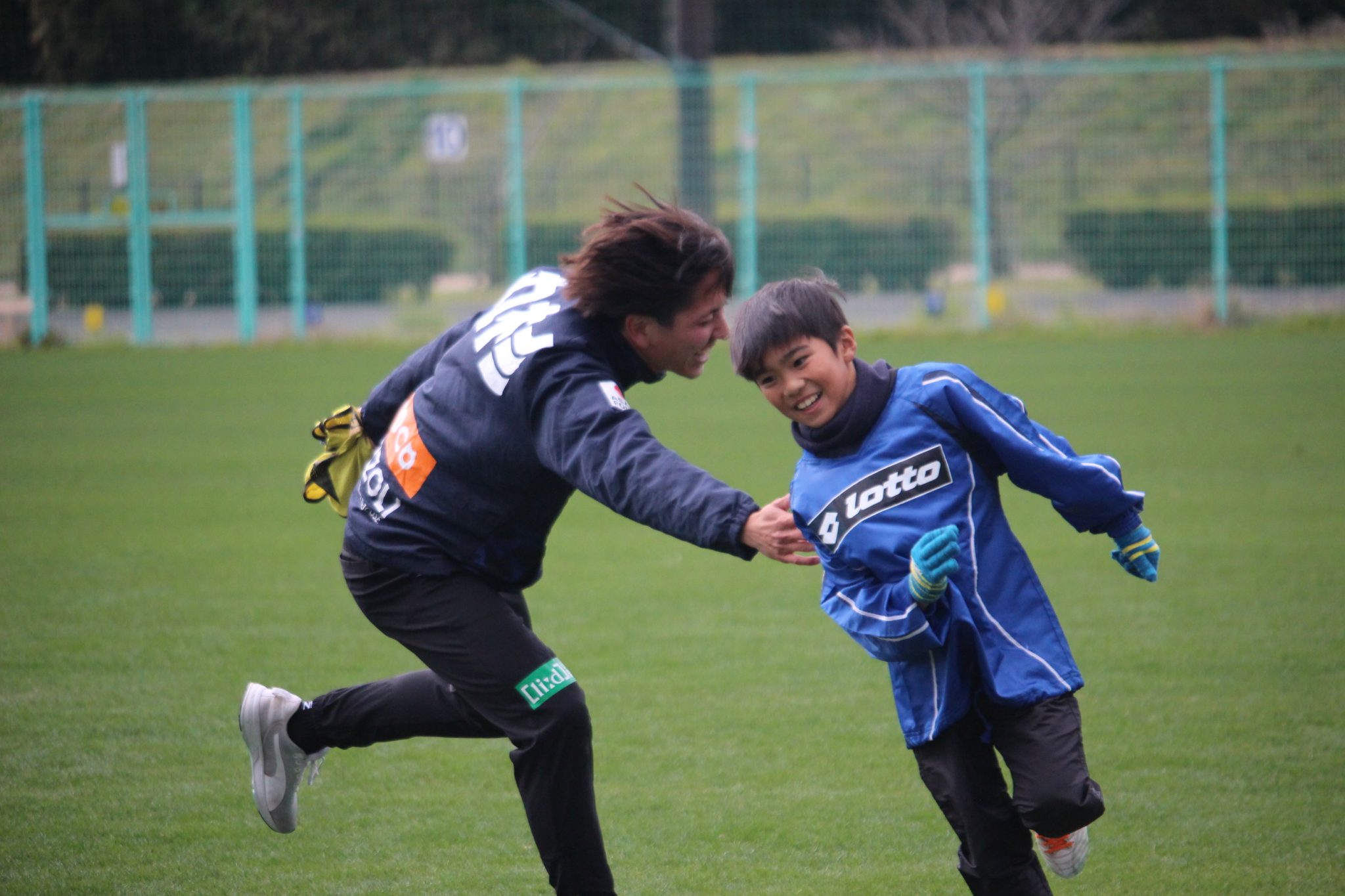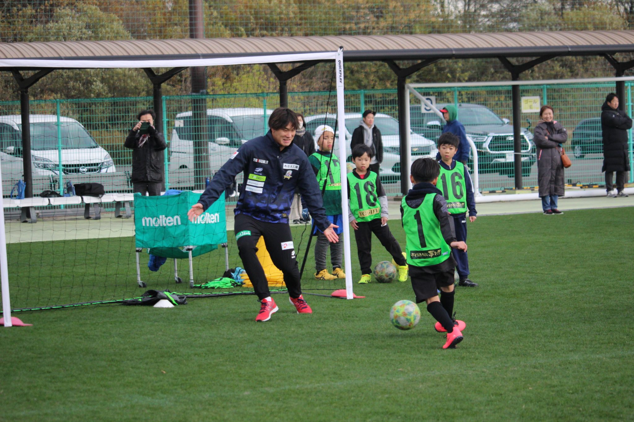 12月15日(日)サッカー教室では、ウォーミングアップで選手と一緒に体を動かしたり、選手からボールを奪うゲームを行ったりと笑顔が絶えないサッカー教室となりました。