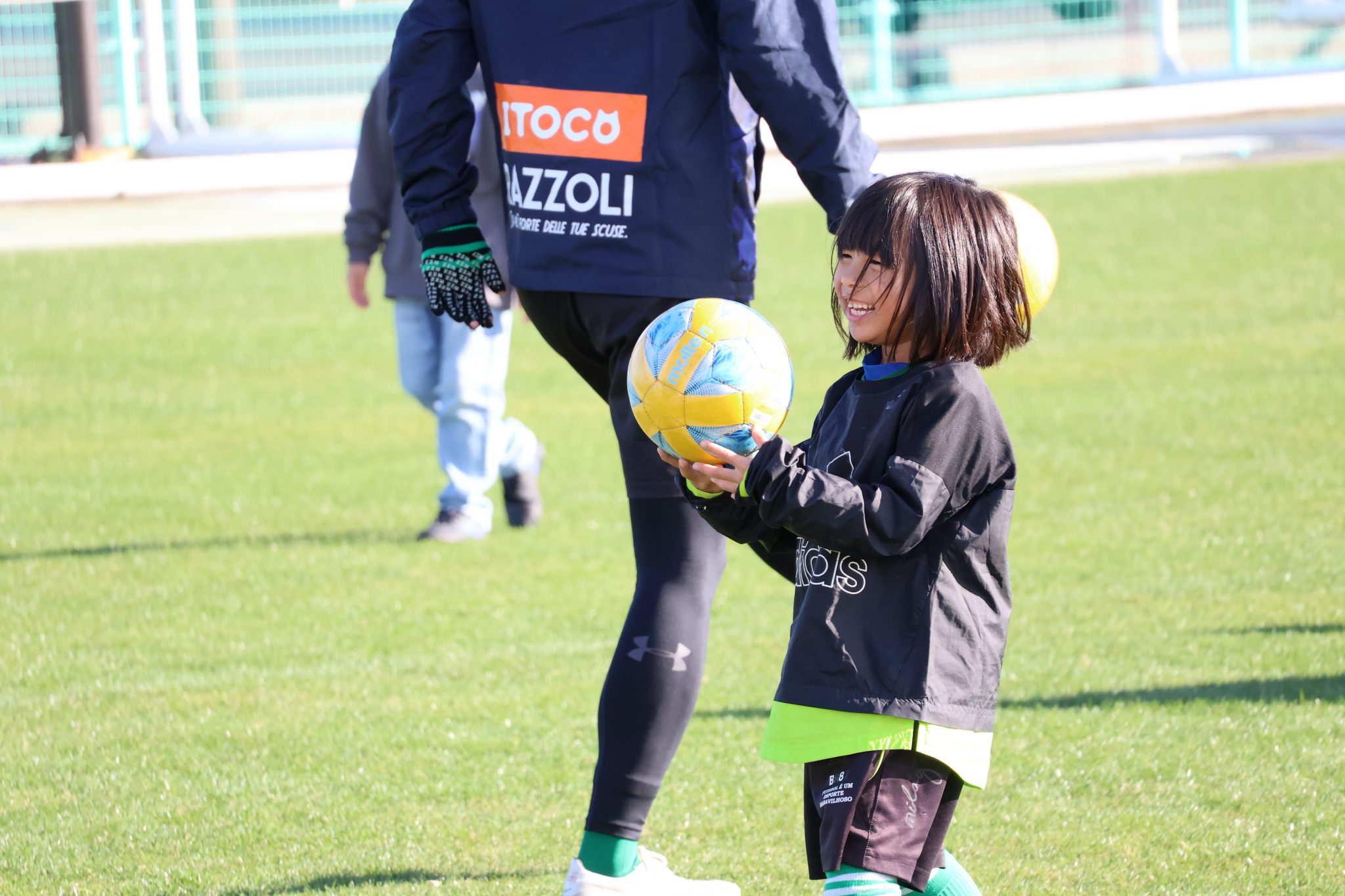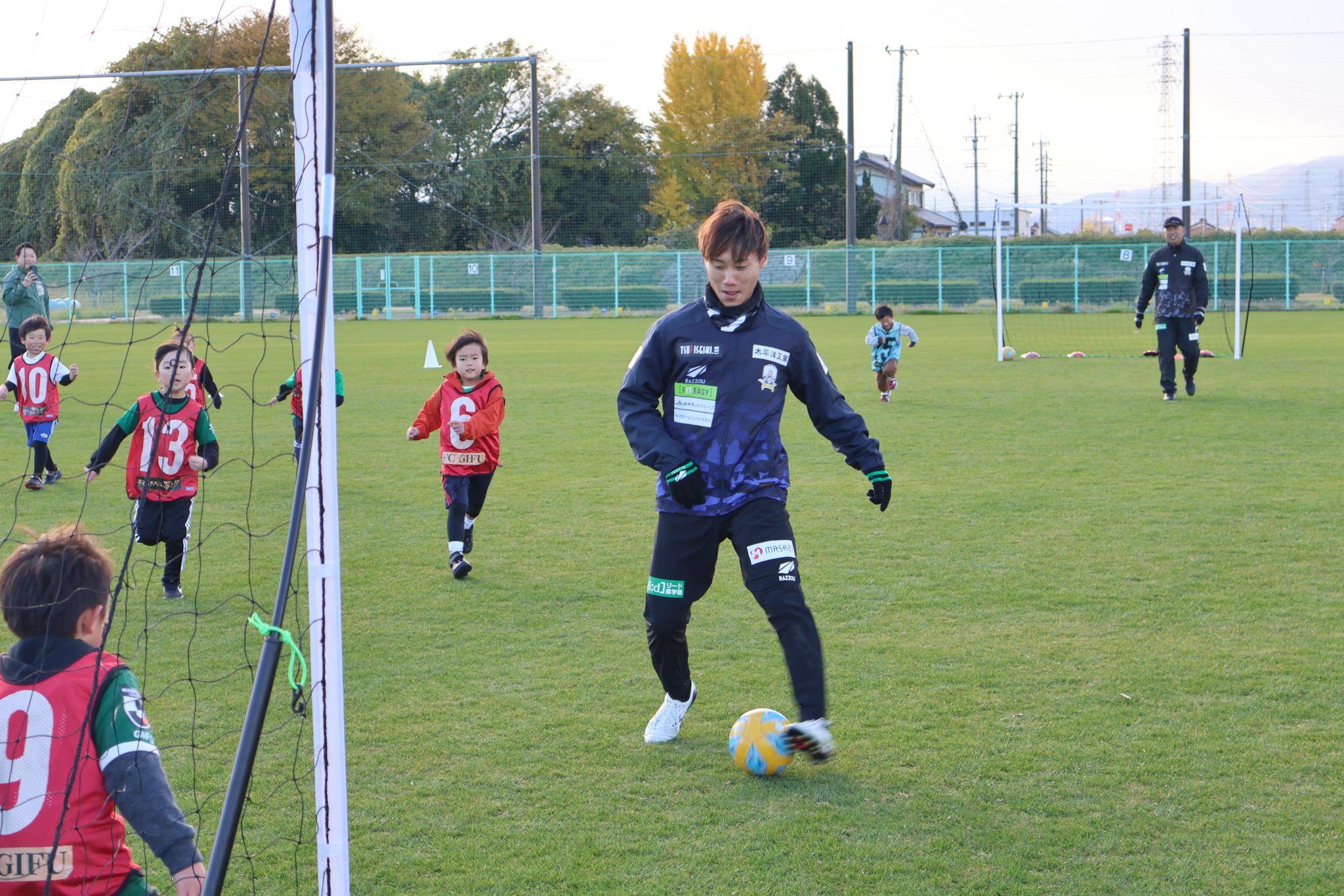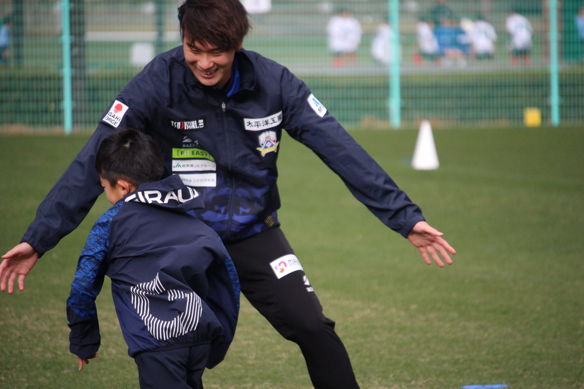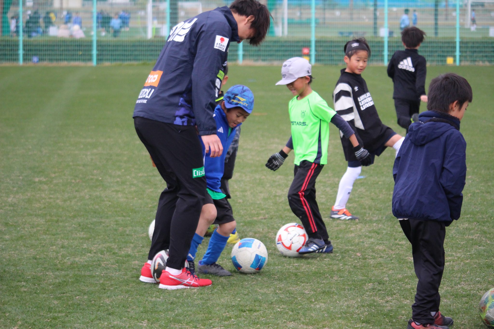 12月15日(日)サッカー教室では、ウォーミングアップで選手と一緒に体を動かしたり、選手からボールを奪うゲームを行ったりと笑顔が絶えないサッカー教室となりました。