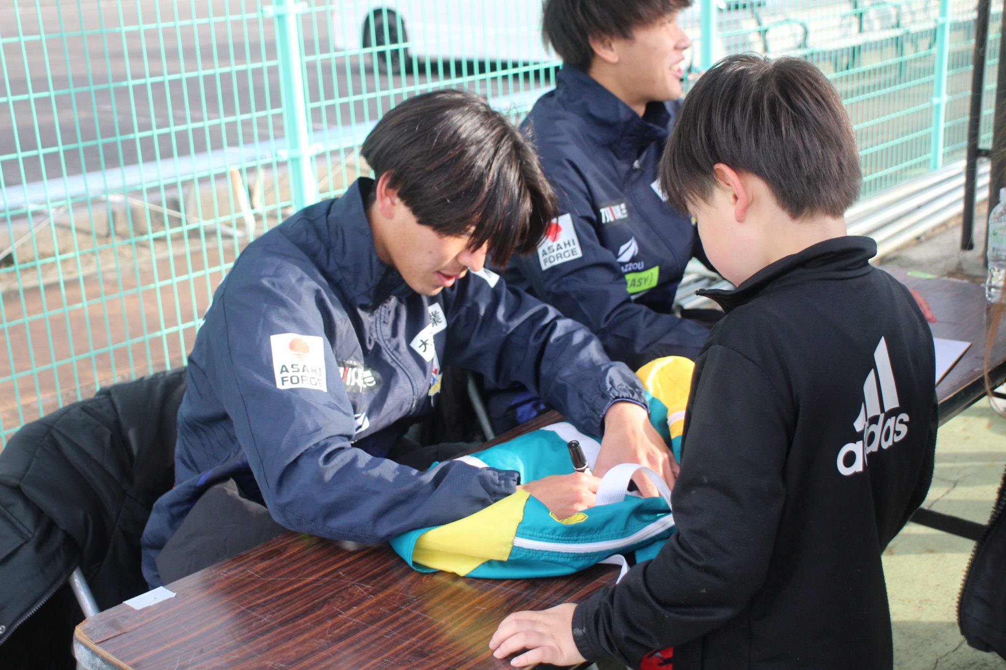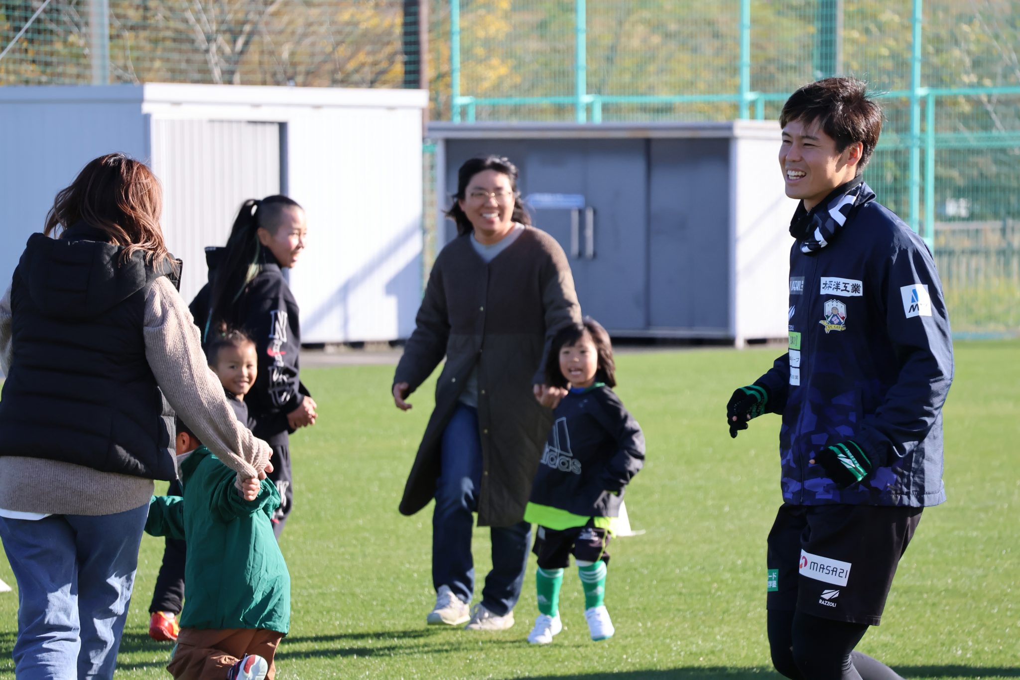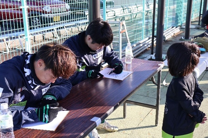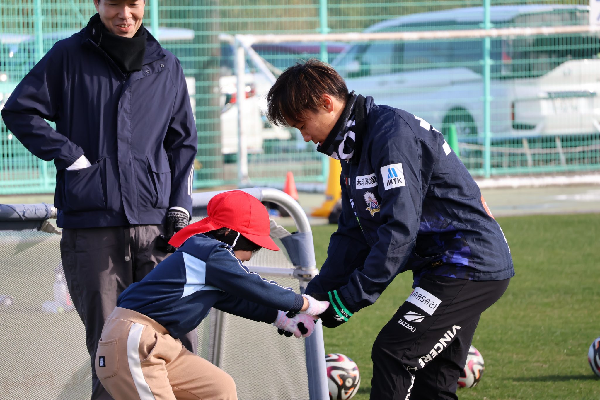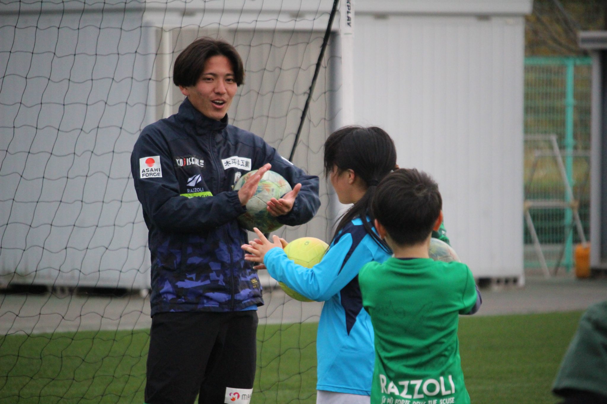12月15日(日)サッカー教室では、ウォーミングアップで選手と一緒に体を動かしたり、選手からボールを奪うゲームを行ったりと笑顔が絶えないサッカー教室となりました。