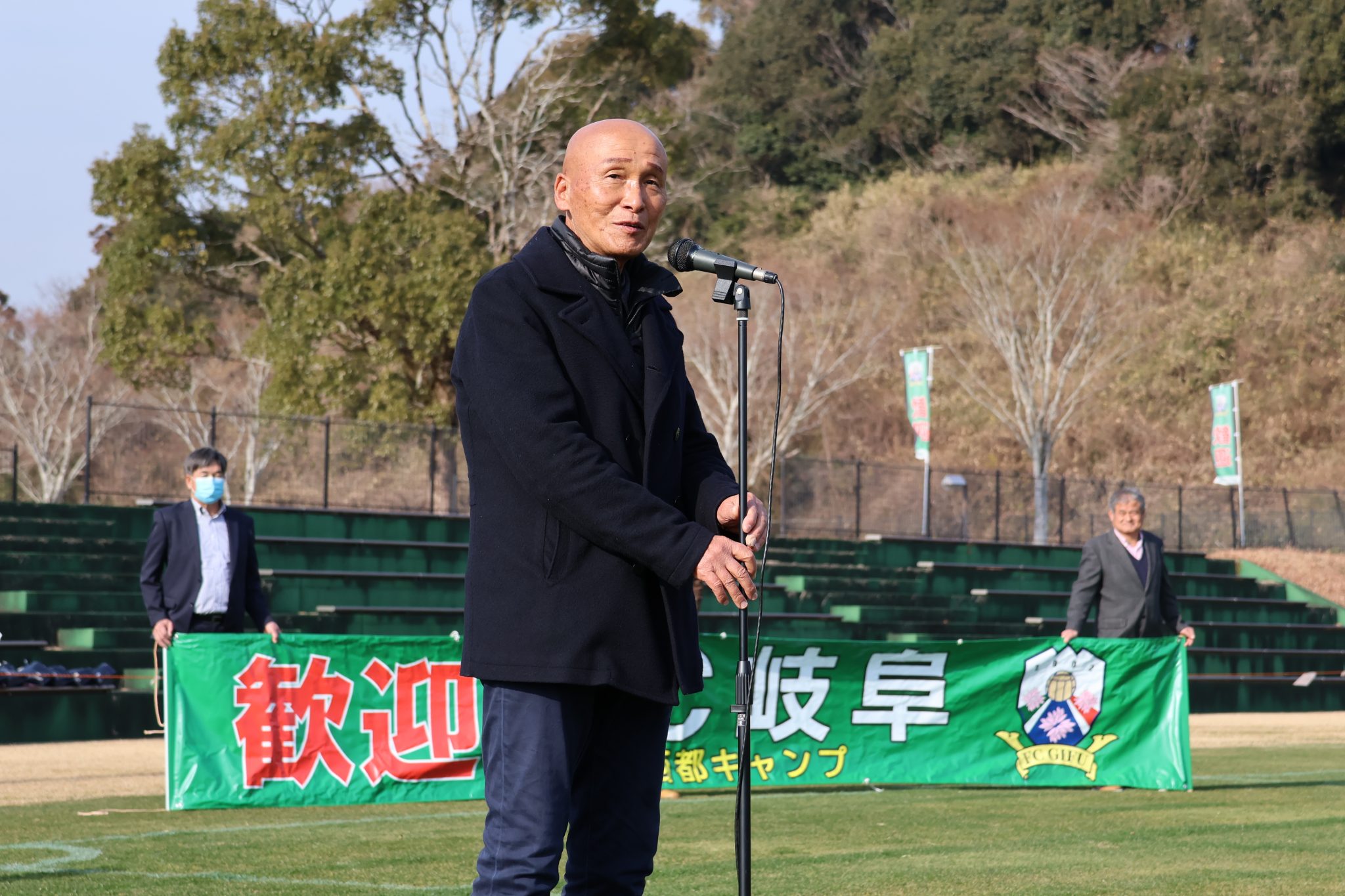 FC岐阜後援会から副会長の川島政樹様、加藤健一様、エグゼクティブ・アドバイザーの吉田勝利様、宮田博之会長、東武良後援会事務局長がチームの激励に宮崎まて駆けつけていただけました。