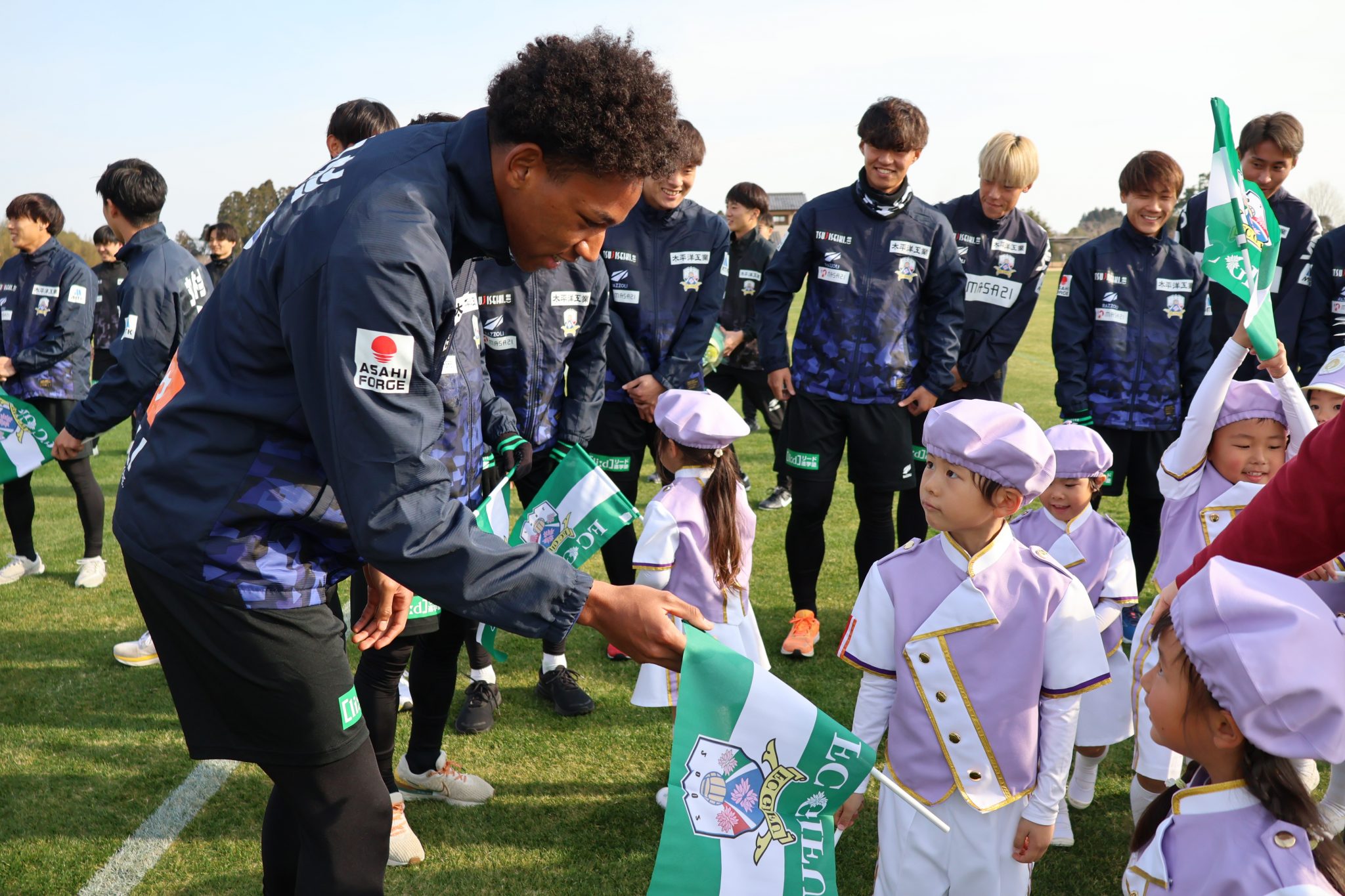 お礼に選手から子どもたちに、FC岐阜フラッグをプレゼントさせていただきました。