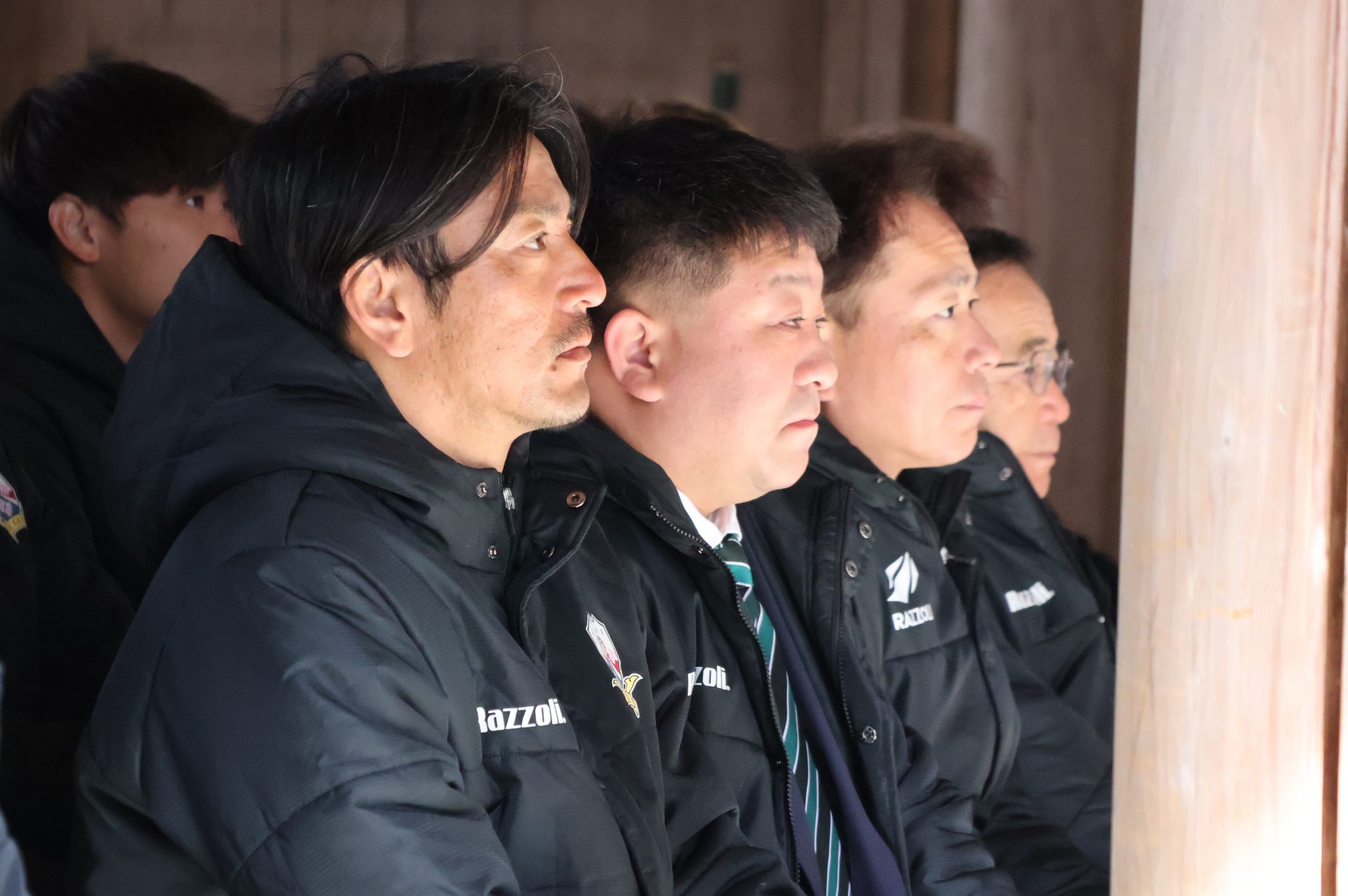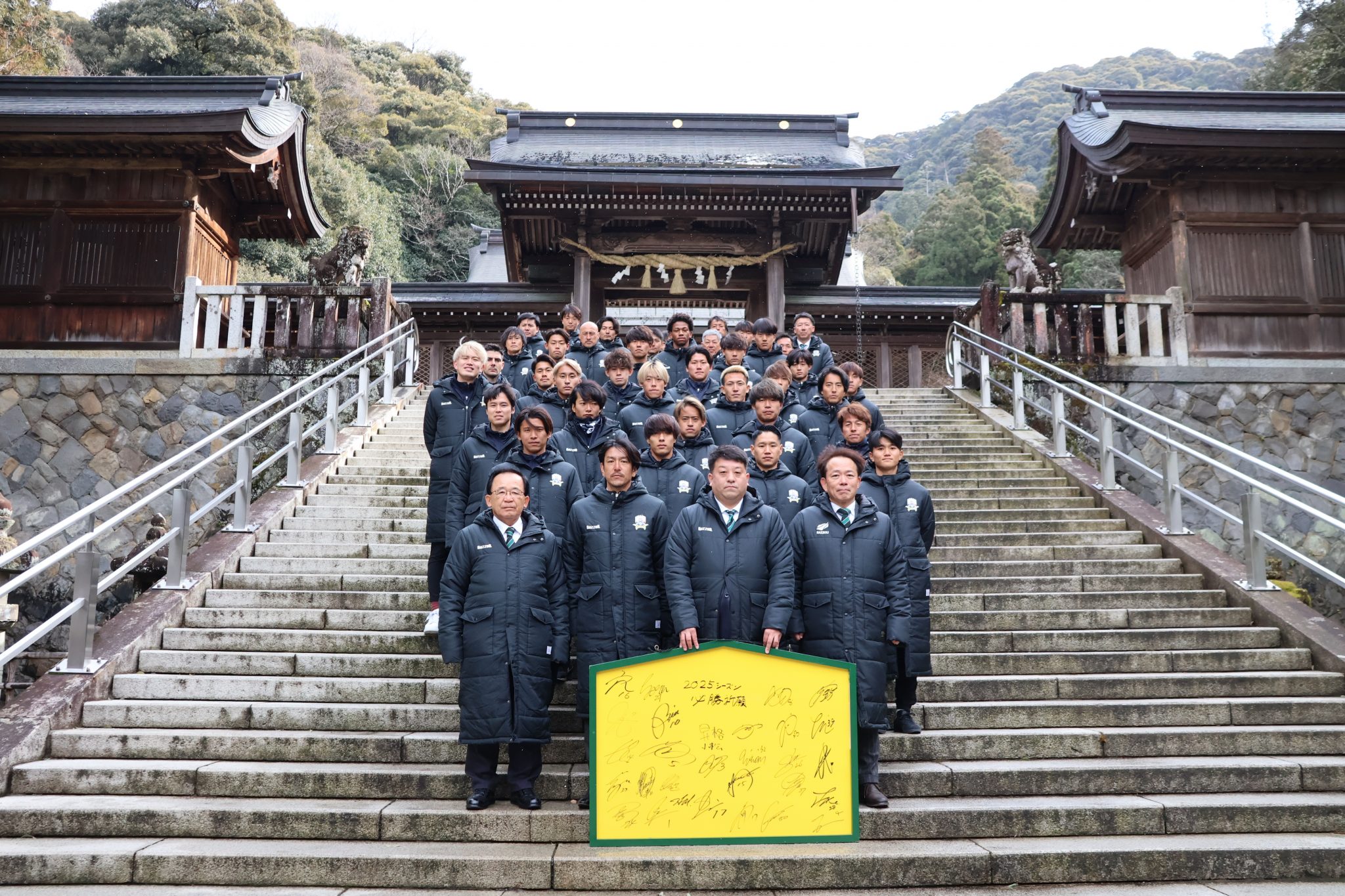 2月4日(火) 岐阜市の伊奈波神社にて、FC岐阜後援会 副会長の川島政樹様、FC岐阜 宮田博之会長、小松裕志社長、大島康明監督、選手、チームスタッフ、フロントスタッフが、今シーズンのチームの勝利と安全を祈願して必勝祈願を執り行いました。