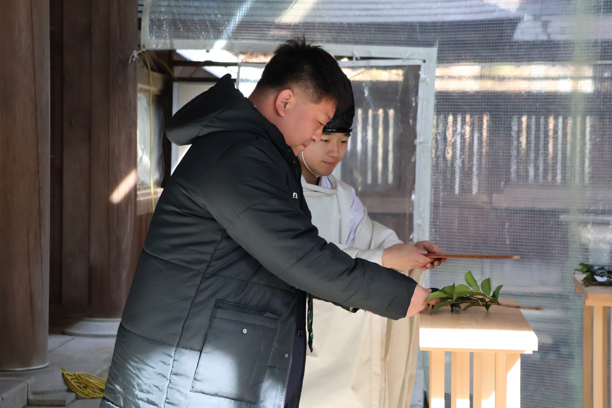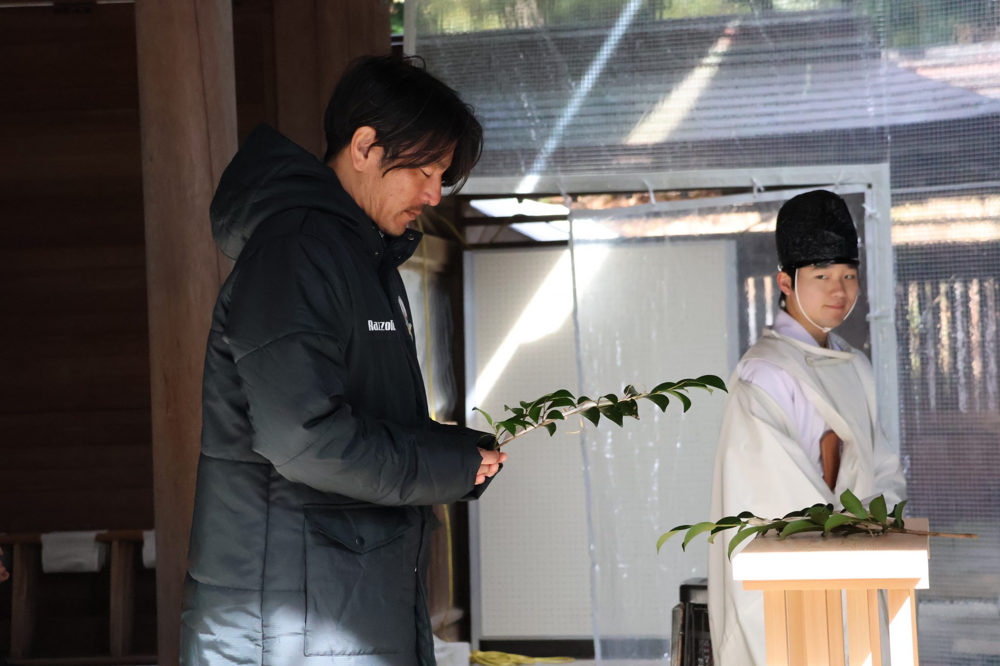 御祈祷のあとは、小松裕志社長、大島康明監督、FC岐阜後援会 副会長 川島政樹様が玉串を捧げました。