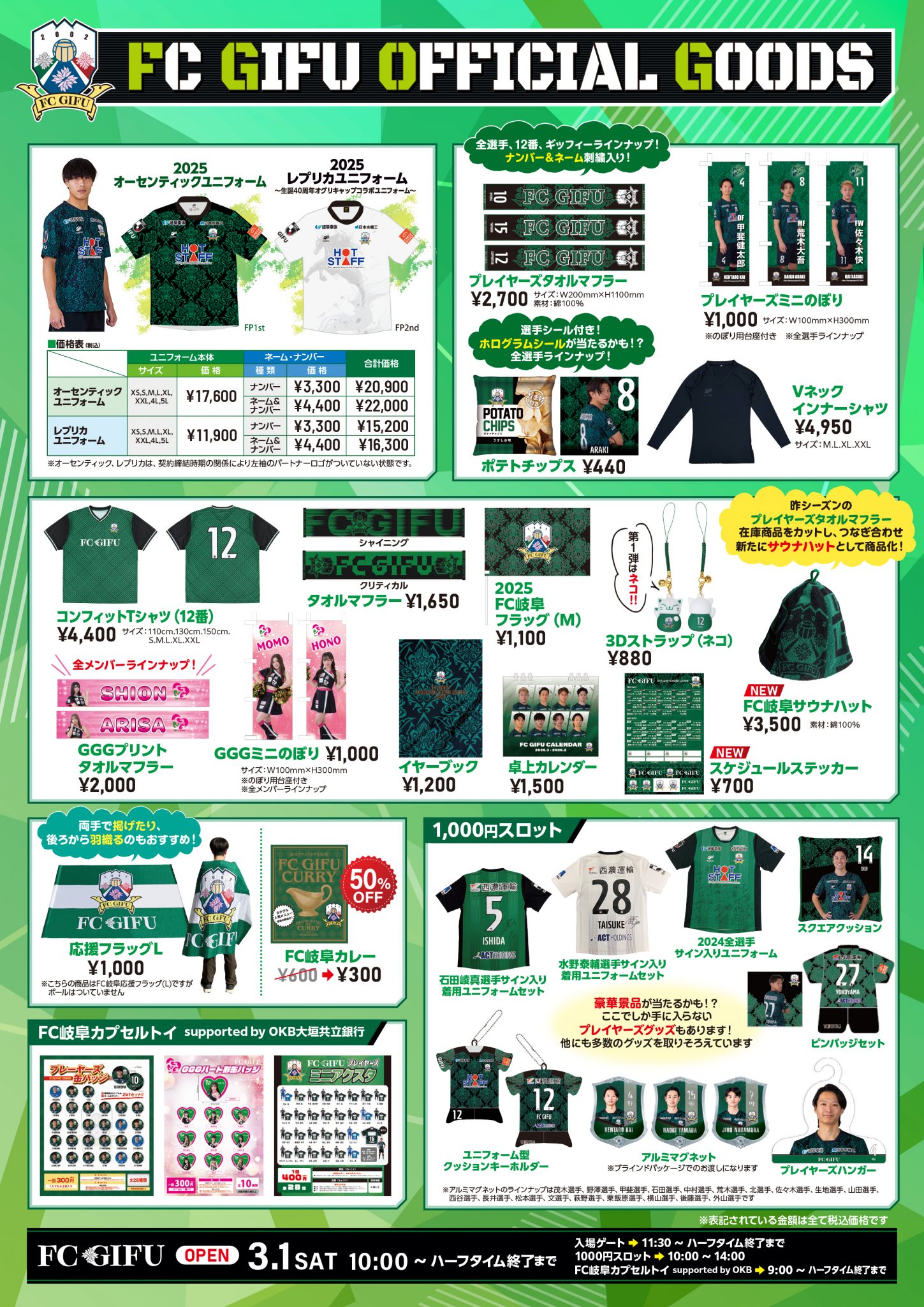 グッズショップ営業時間/10:00~ハーフタイム終了まで(入場ゲート:11:30~ハーフタイム終了まで)
