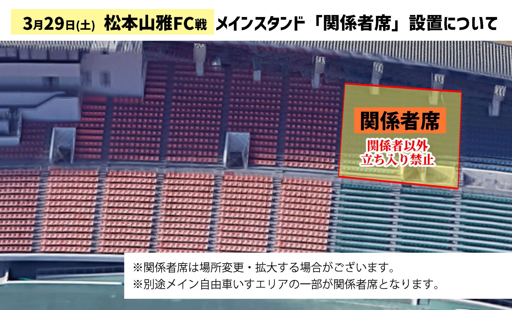 当該試合は運営・観戦ルール等に一部変更があります。 河川敷への駐車になりますので、警備員の指示に従って、安全な運用にご協力ください。 メイン自由席の一部に「関係者席」を設置いたします。対象エリア内は一般のお客様はご着席いただけません。 金華橋において、コンクリート床板の大規模な修繕を行うため、令和7年2月28日(金曜)9時から令和7年10月(予定)まで、工事に伴う通行規制により、終日片側1車線の通行となります。(北進2車線→1車線、南進2車線→1車線)。★お知らせ★