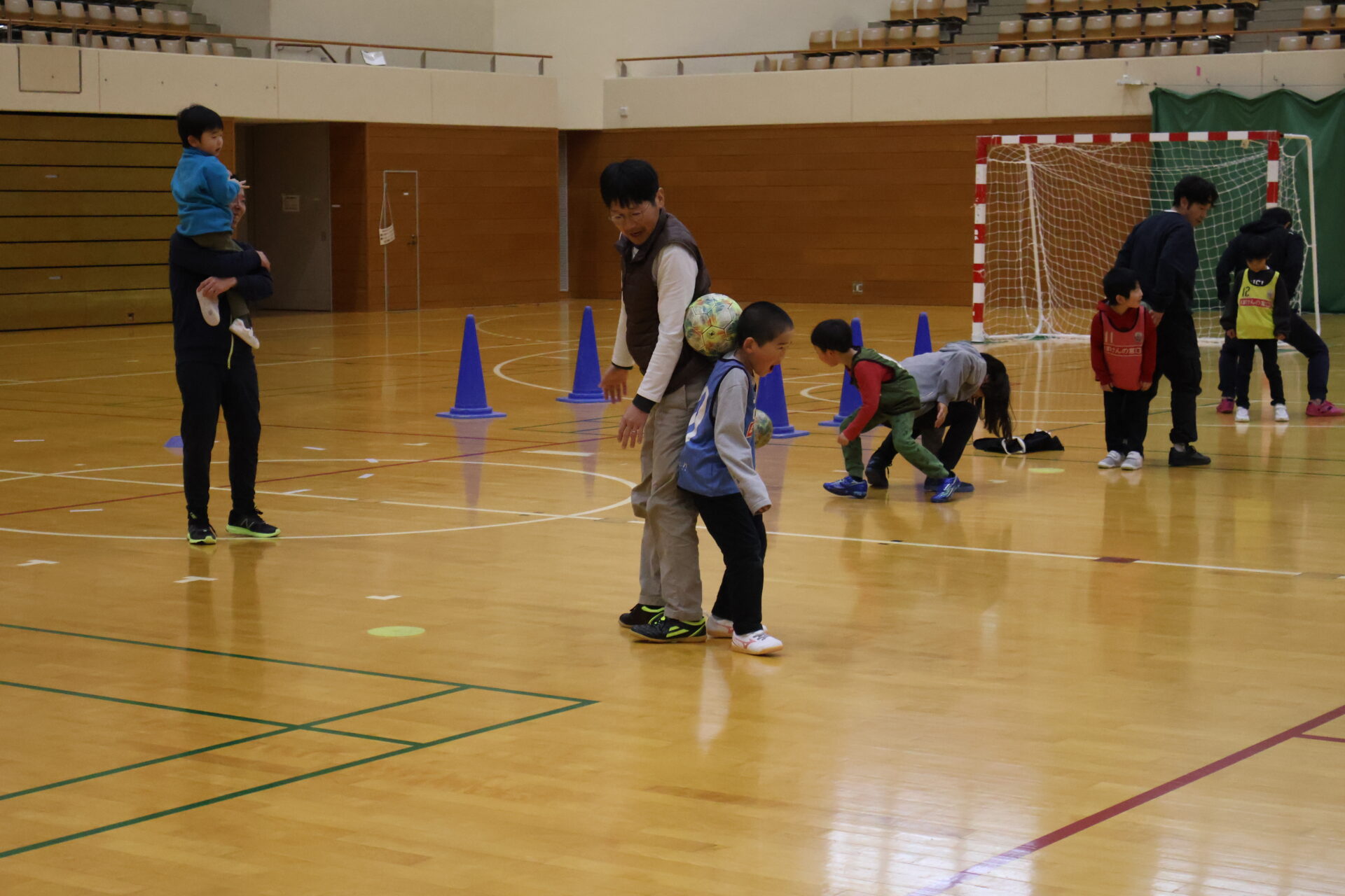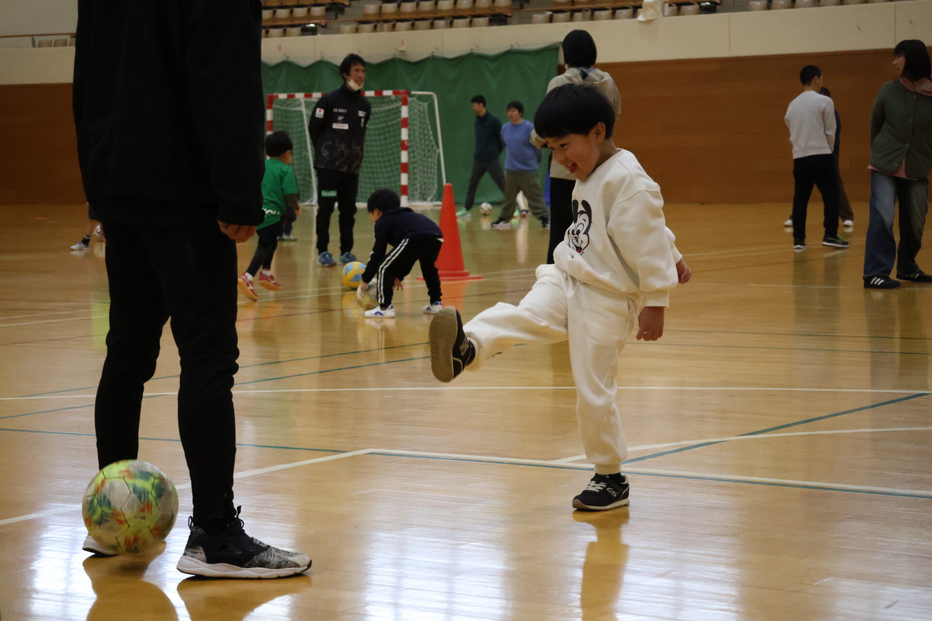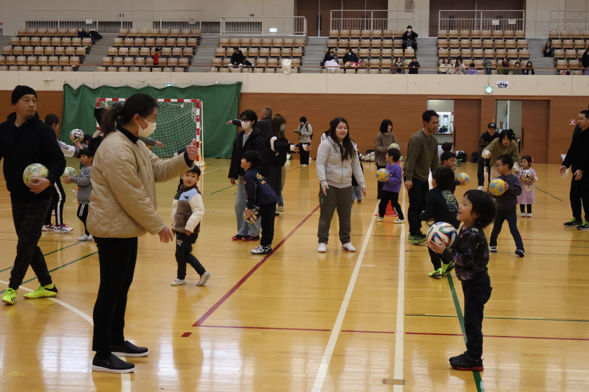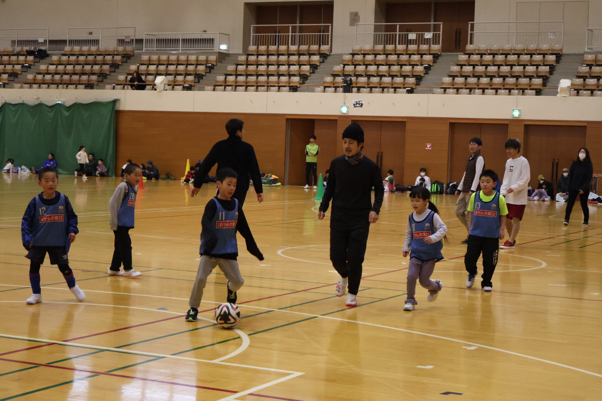 3月8日(土)高山市の飛騨高山ビッグアリーナにて、高山市主催の「高山市親子サッカー教室」が開催され、年中から小学2年生を対象に73組146名と楽しく交流しました。