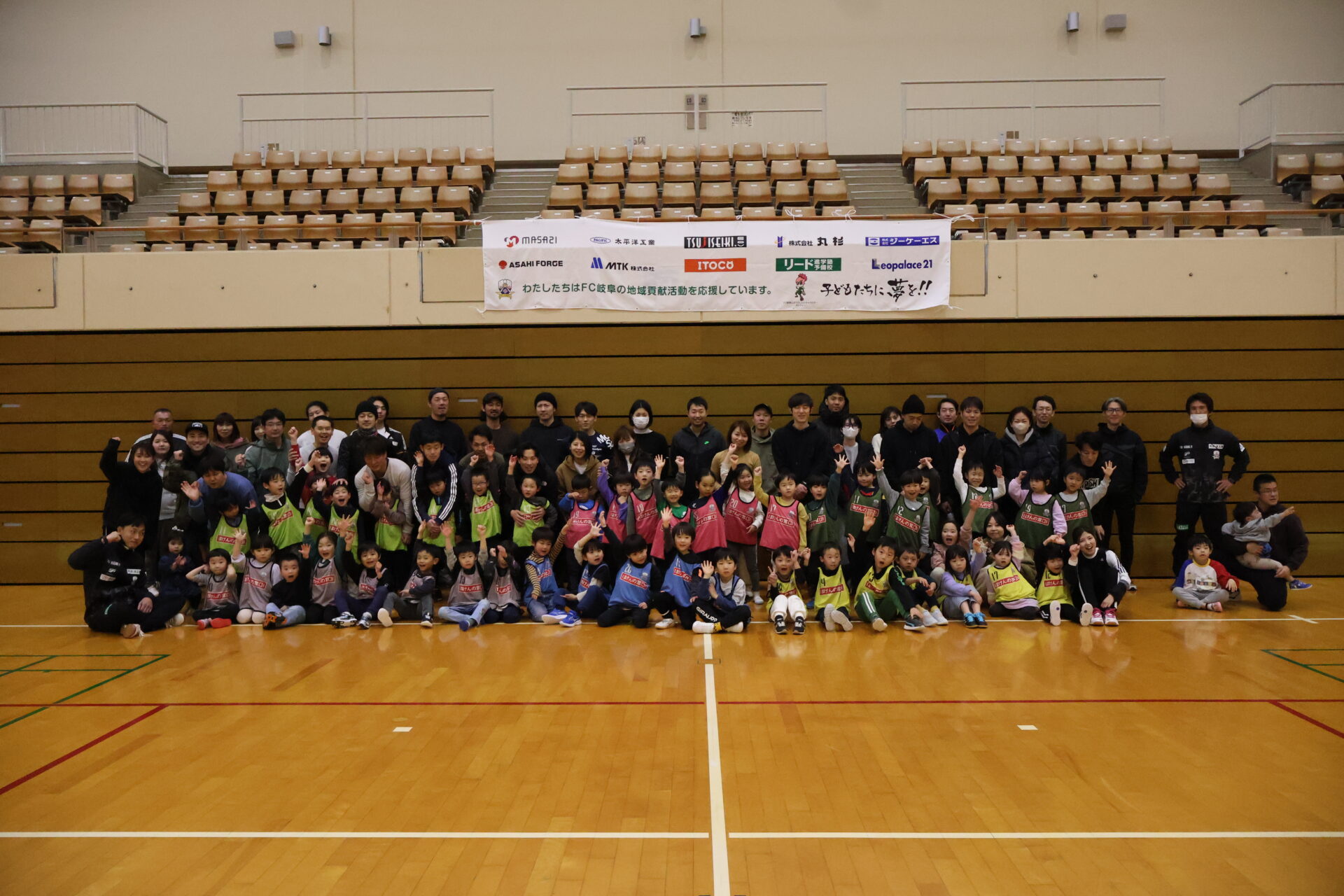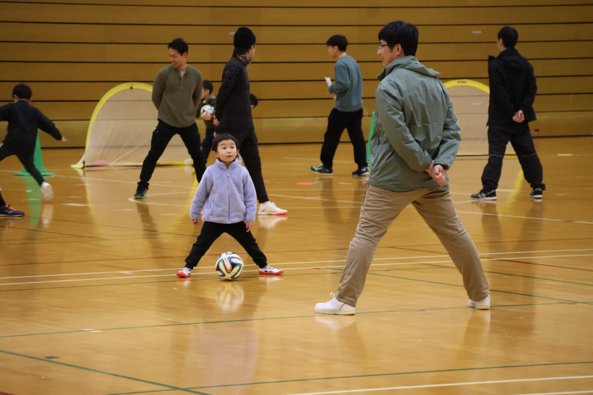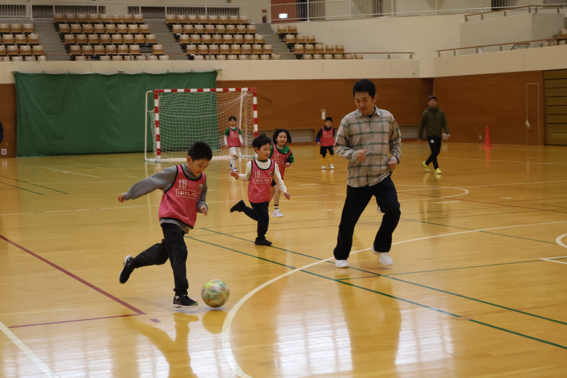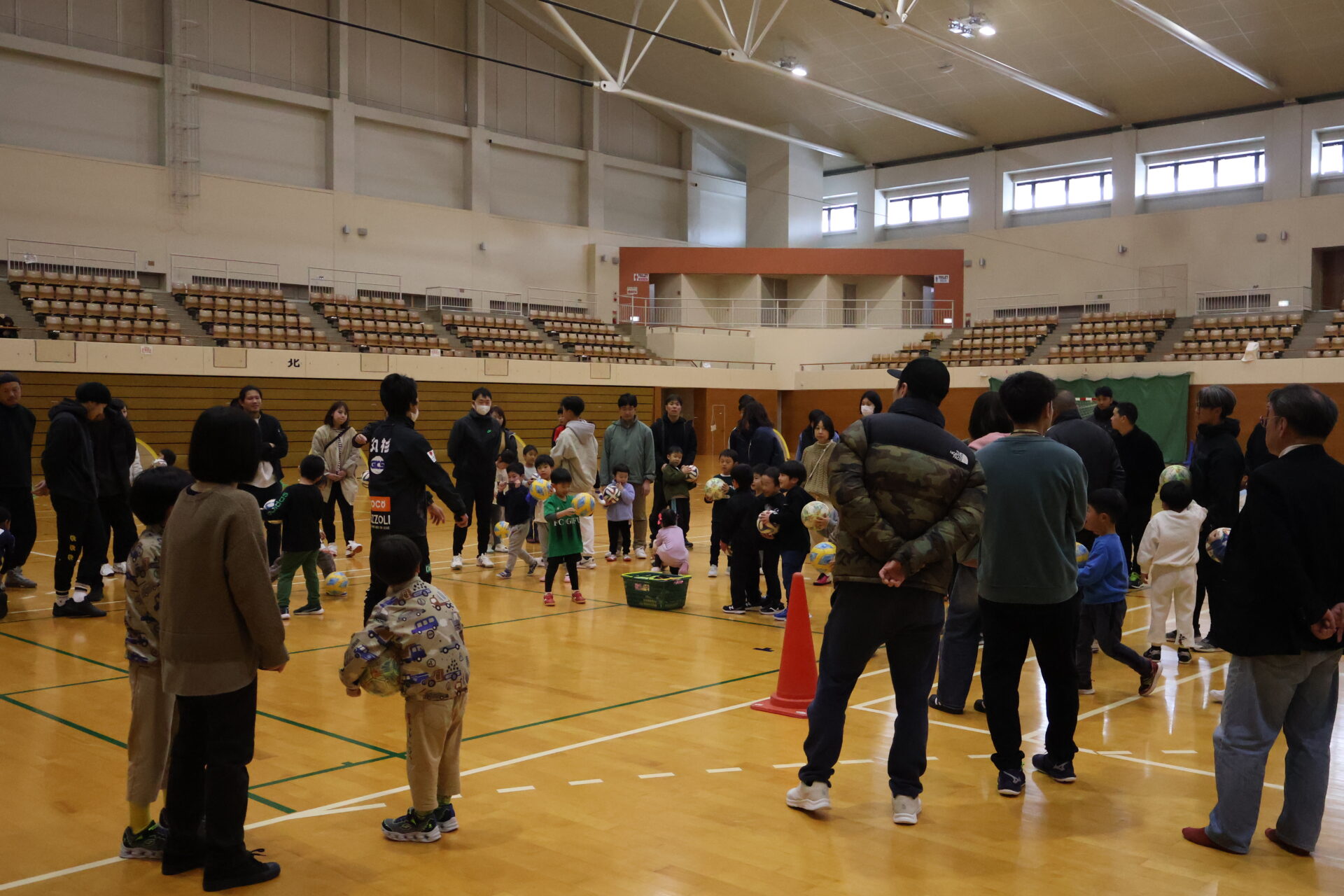 3月8日(土)高山市の飛騨高山ビッグアリーナにて、高山市主催の「高山市親子サッカー教室」が開催され、年中から小学2年生を対象に73組146名と楽しく交流しました。