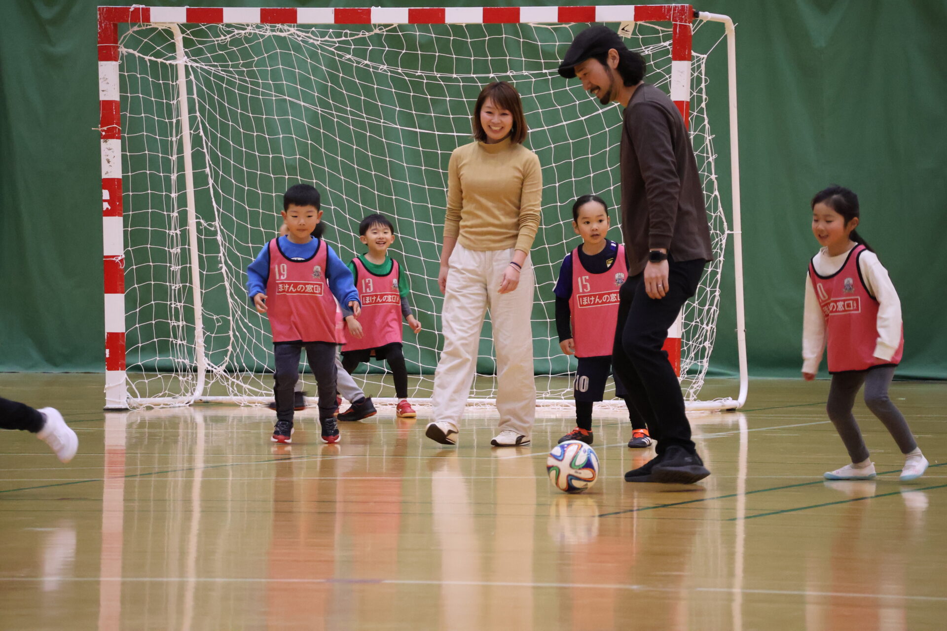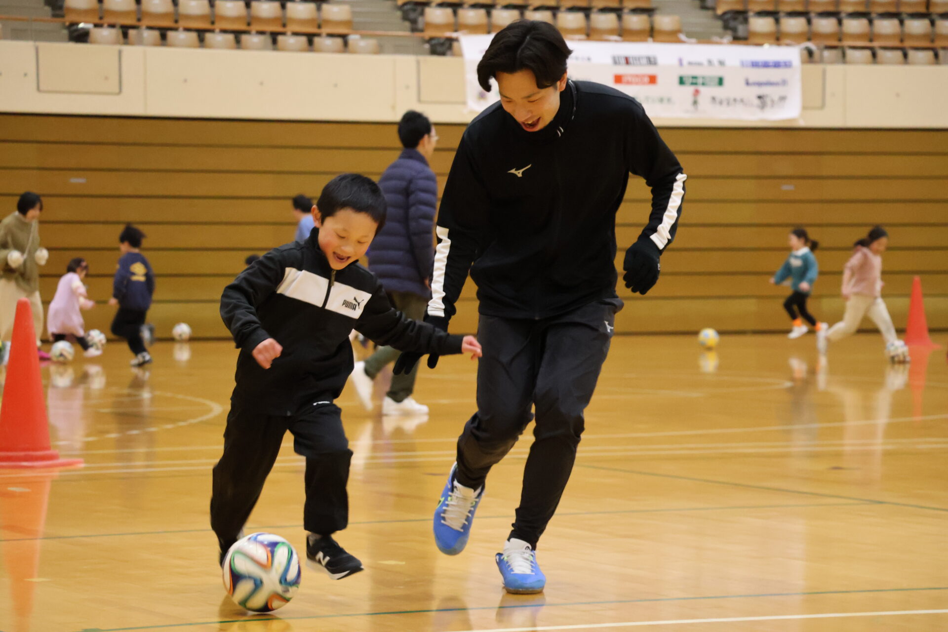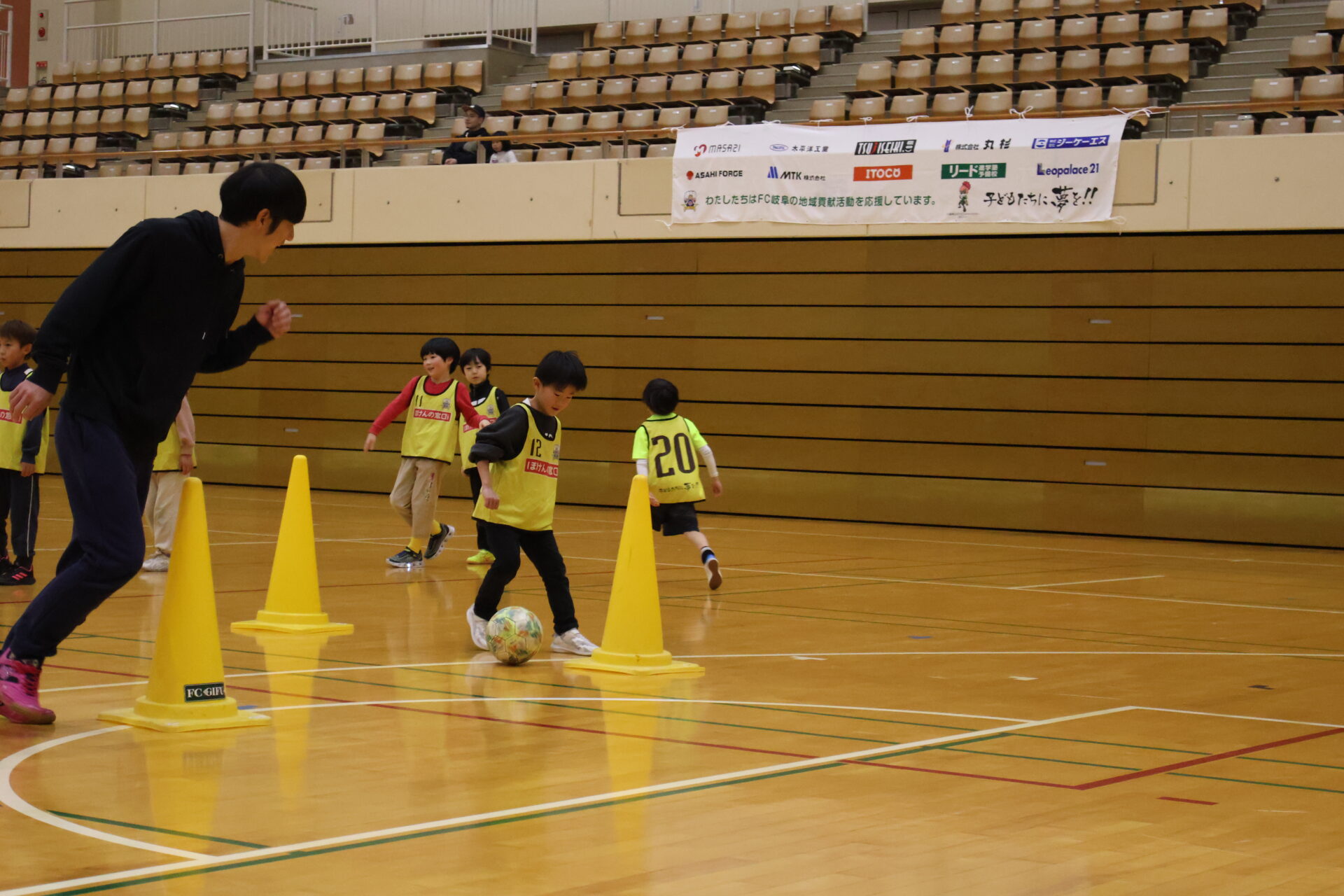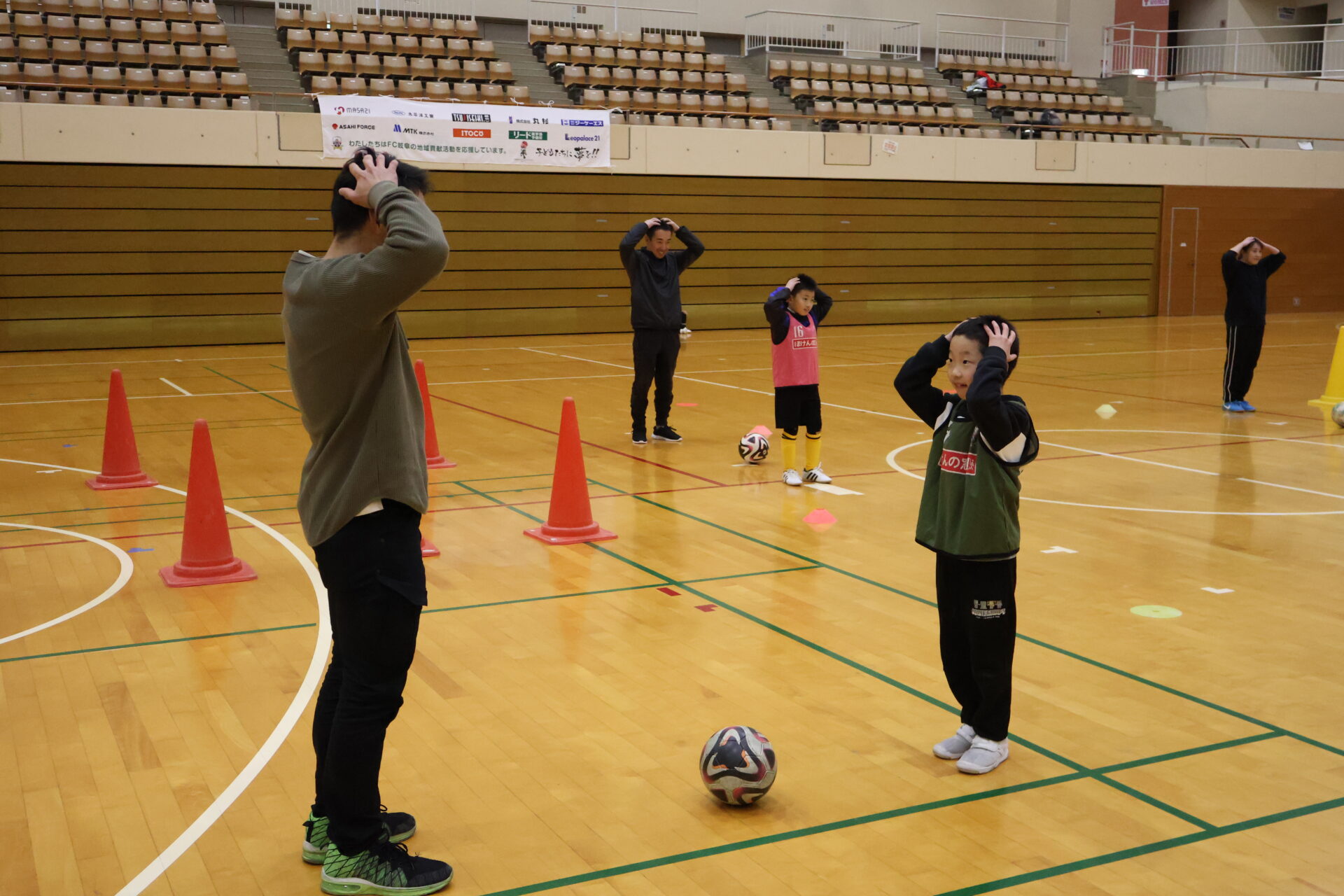 3月8日(土)高山市の飛騨高山ビッグアリーナにて、高山市主催の「高山市親子サッカー教室」が開催され、年中から小学2年生を対象に73組146名と楽しく交流しました。
