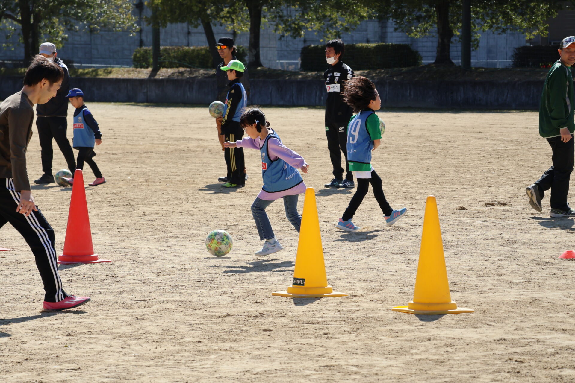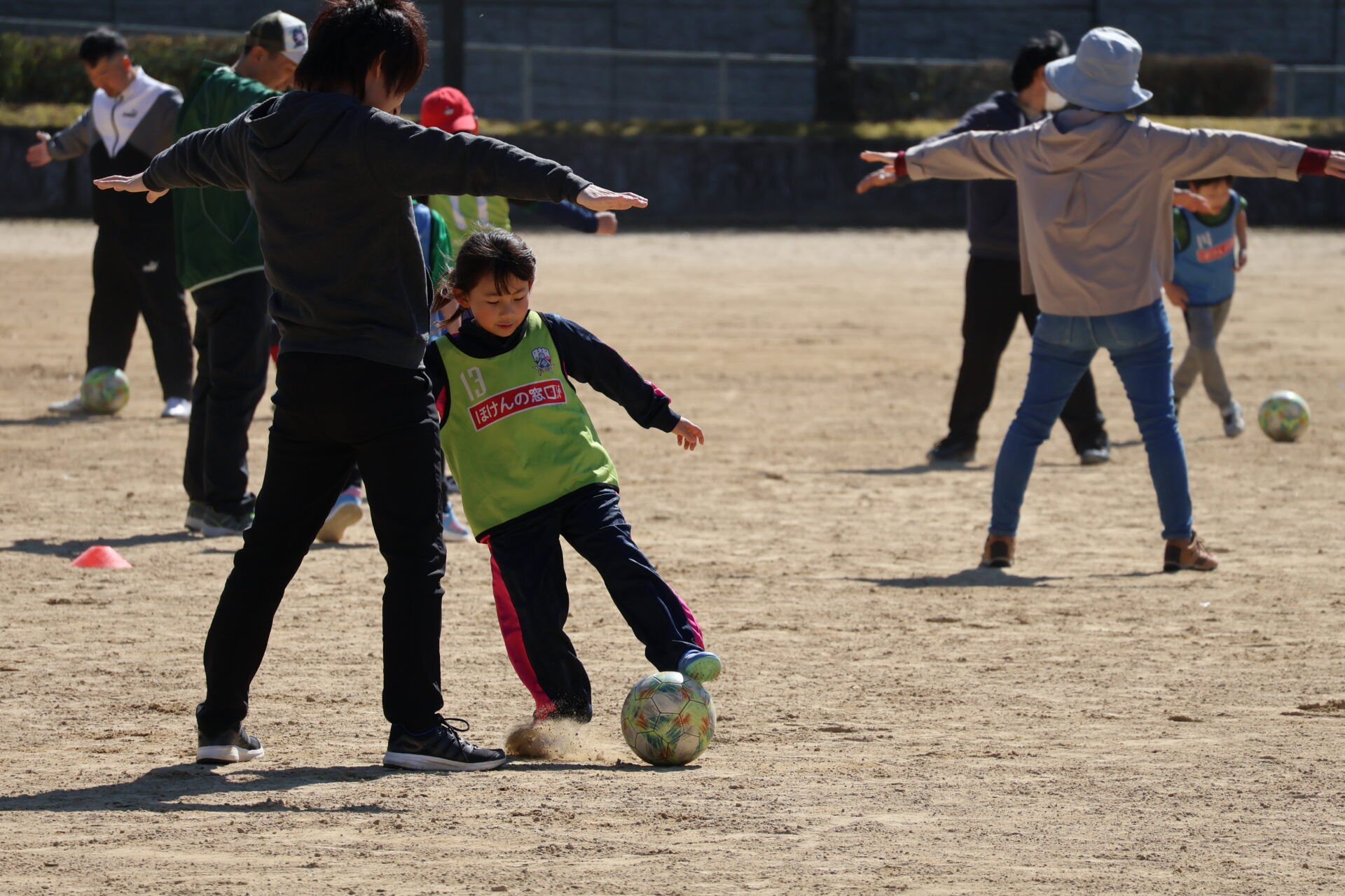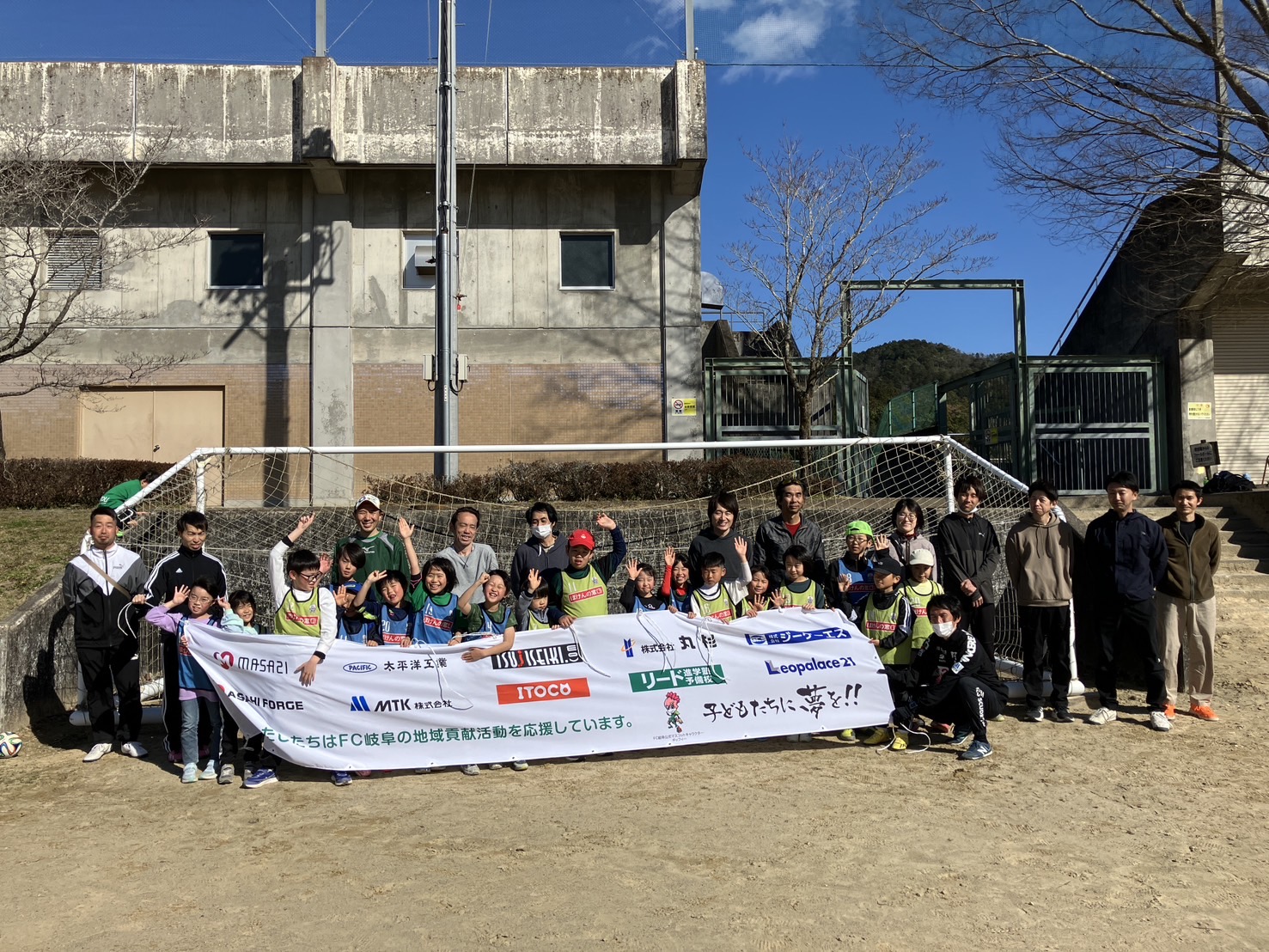 3月9日(日)岐阜市の岐阜ファミリーパーク サッカー・ラグビー場にて、ファミリーパークホールディングス主催の「岐阜ファミリーパーク親子サッカー教室」が開催され、年中から小学4年生を対象に30組60名と交流しました。