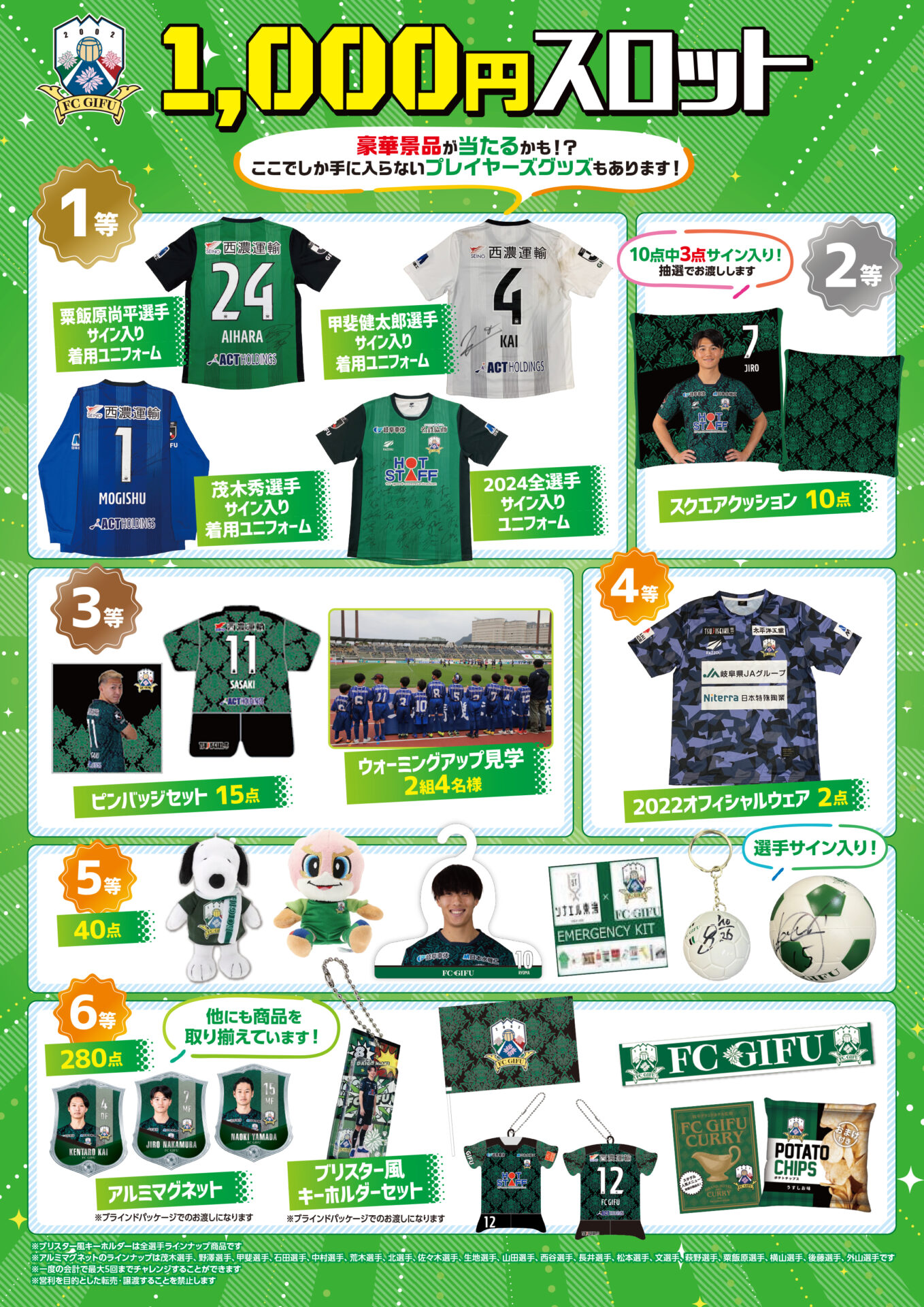 FC岐阜オフィシャルグッズショップにてFC岐阜グッズを3,000円(税込)以上お買い上げのお客様、先着200名様に「オリジナル選手カード」をプレゼント!