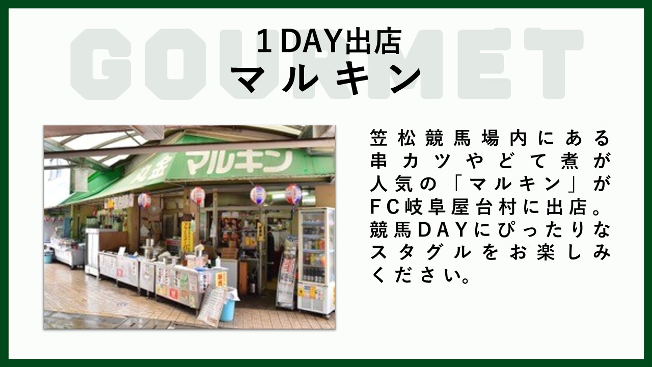 笠松競馬場内の串カツやどて煮が人気の「マルキン」が出店!競馬DAYにぴったりなスタグルをお楽しみください。
