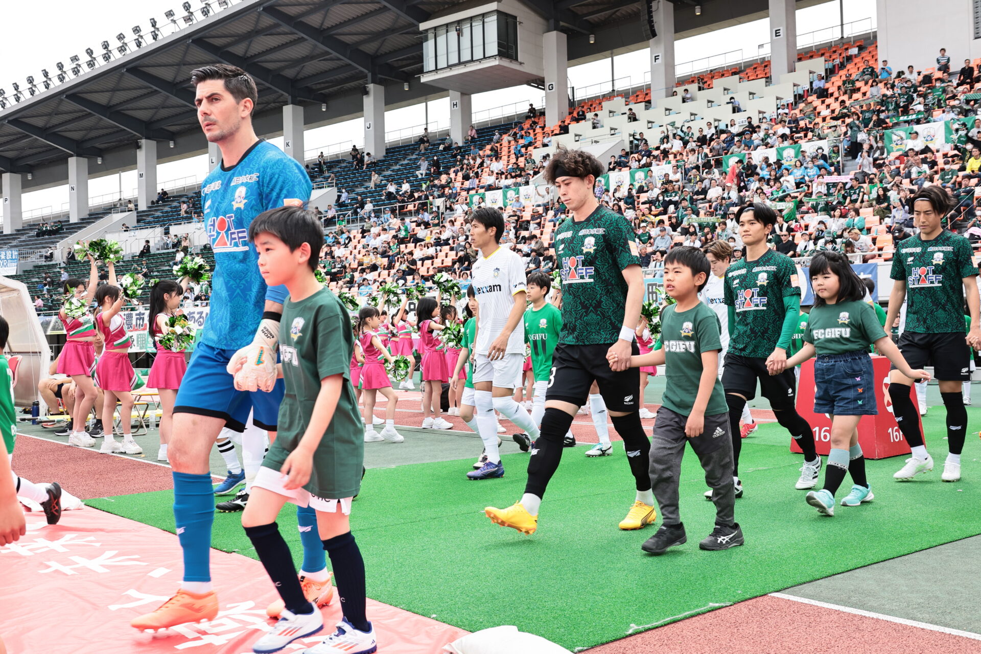 ・FC岐阜選手とお子さまが手を繋ぎ、お子さまとご両親が手を繋いで入場となりますので、予めご了承ください。