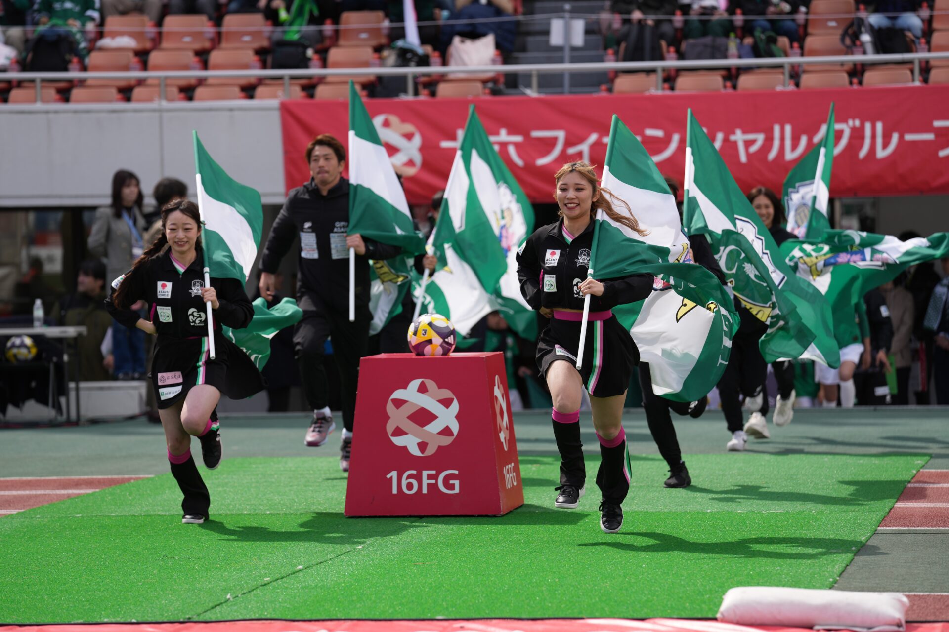 選手入場時にピッチ上でFC岐阜フラッグを振って、スタジアムを盛り上げよう!