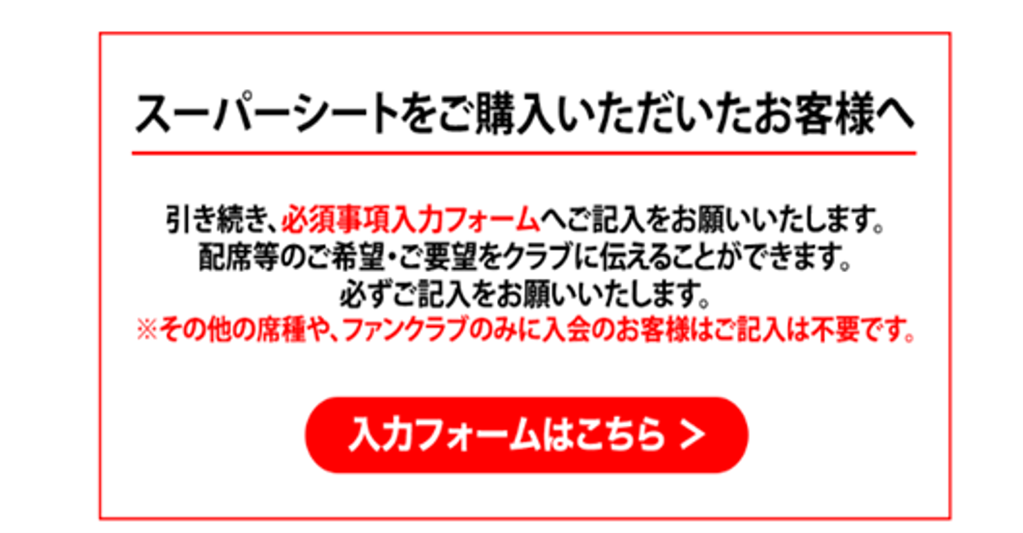 ●スーパーシートを購入された方は、購入後に表示される「入力フォーム」に希望する座席を入力してください。(入力後、後日FC岐阜からご連絡させていただきます)