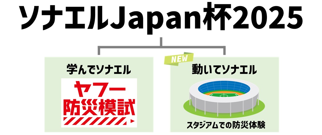 「ソナエルJapan杯」とは、Jリーグ全60クラブ、ファン、サポーター、地域の人々の参加による防災や災害に関する知識を身に付けていく取り組みです。