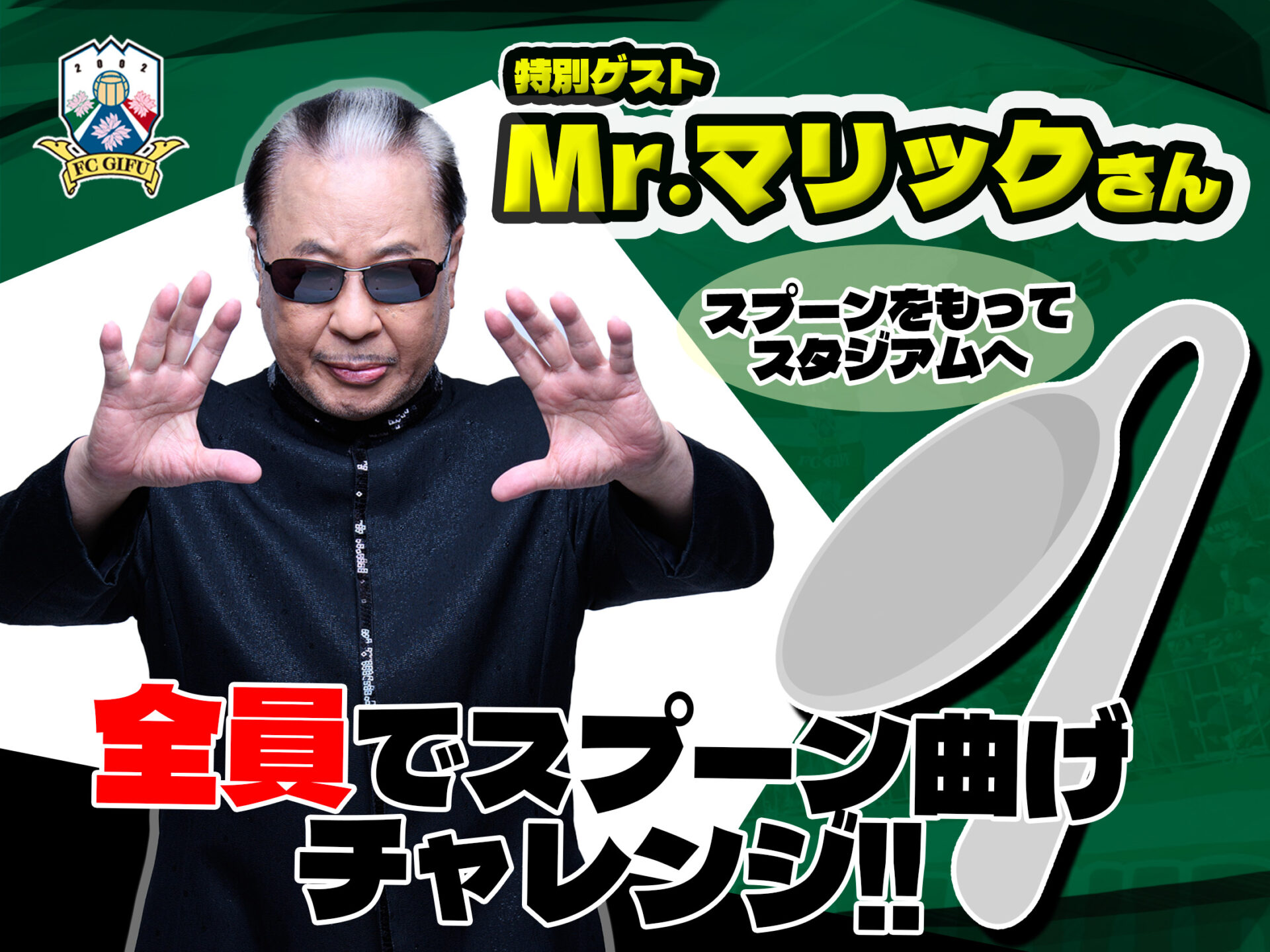 Mr.マリックさんが来場者の皆さまと共にスプーン曲げにチャレンジ!! マリックさんと一緒にハンドパワーを使って、スタジアムにパワーをためましょう!!