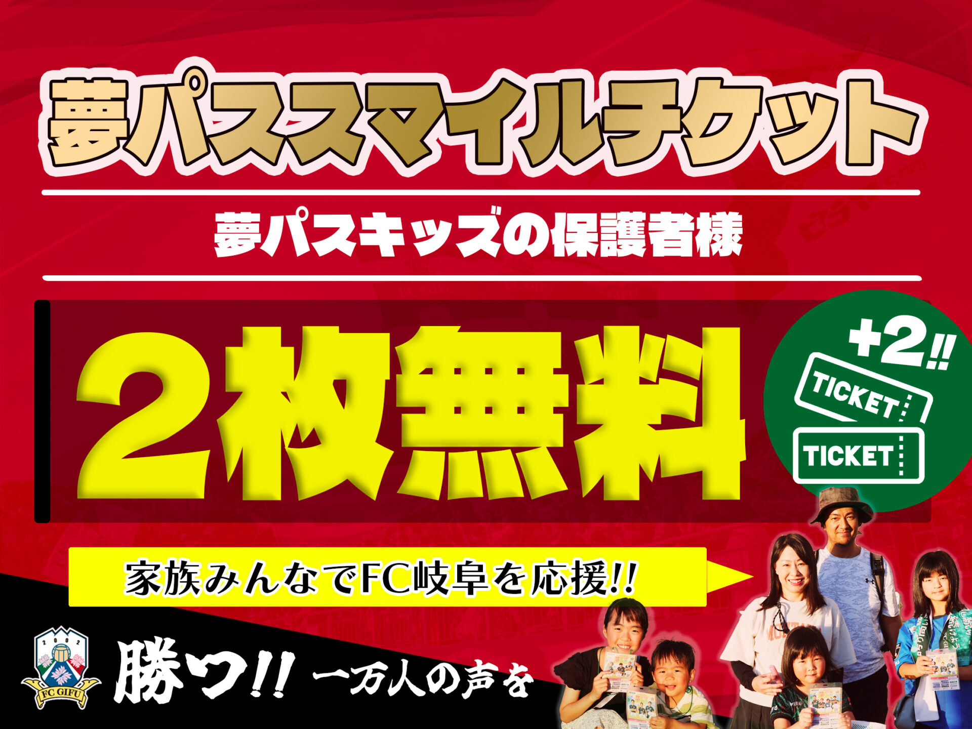 9月20日(土) AC長野パルセイロ戦では、日頃よりFC岐阜を応援してくださる皆さまが、ご家族やご友人をお誘いいただきやすい 特別チケット をご用意しました。