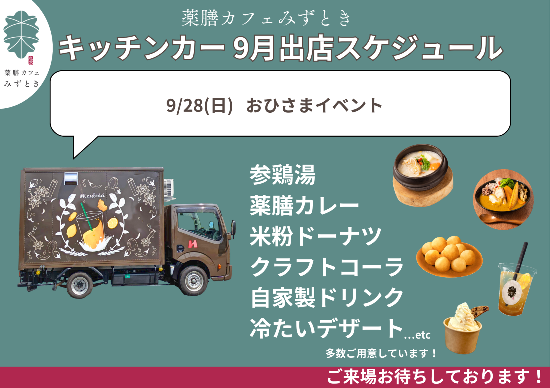 | 主催者 | 薬膳カフェみずときキッチンカー |