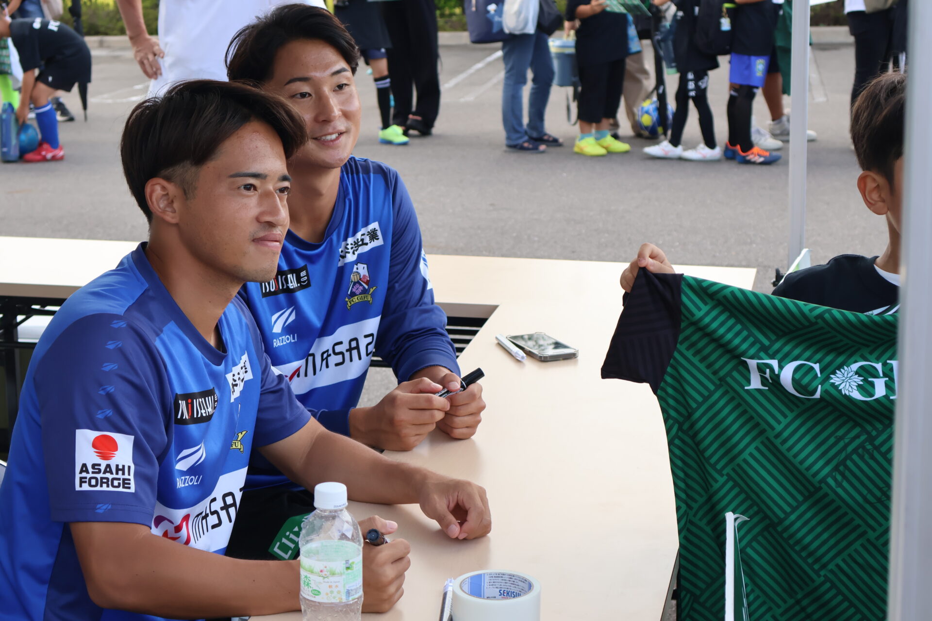 当日は50名の方に参加いただき、FC岐阜トップチームから石田崚真選手と山谷侑士選手が参加し、サッカー教室を盛り上げてくれました⚽