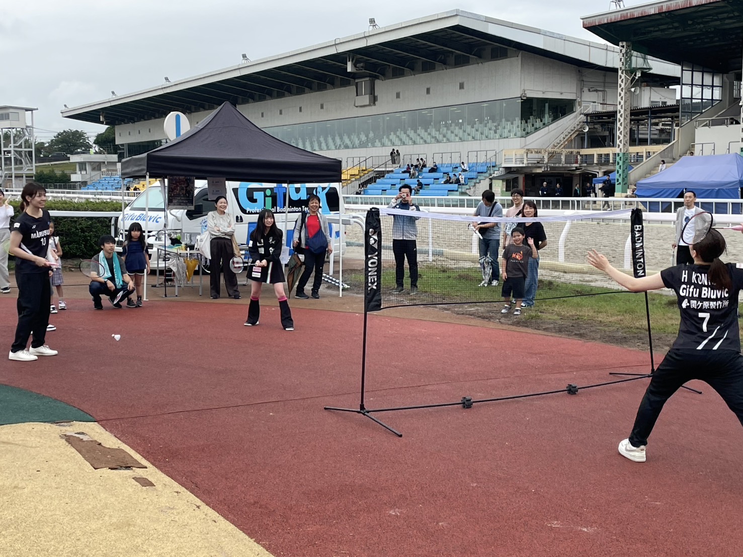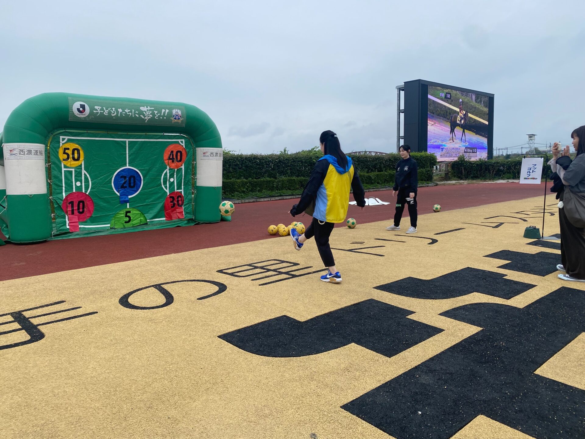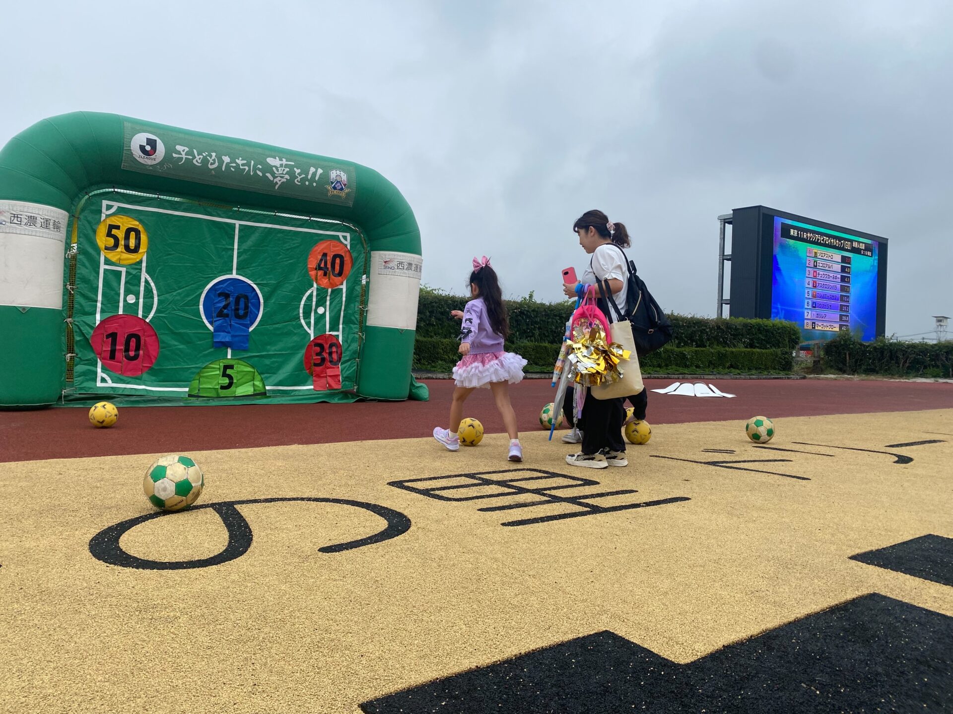 10月11日(土)に「笠松けいば秋まつり2025」のイベントに参加しました。GGGが特別ステージでトークショーを行い、FC岐阜ブースではキックターゲットやフットゴルフを行いました。