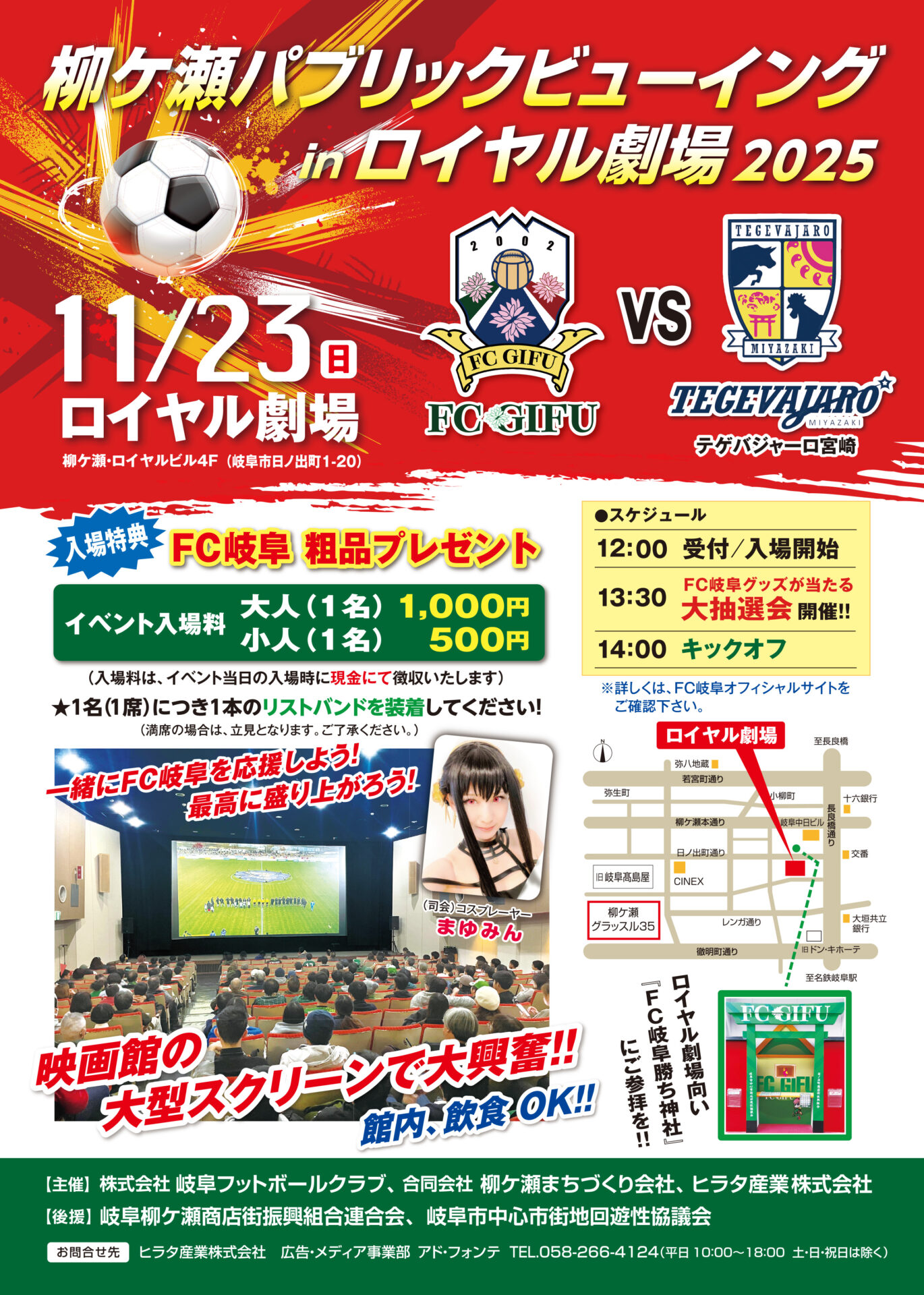 11/23(日・祝) テゲバジャーロ宮崎戦 柳ケ瀬パブリックビューイング in ロイヤル劇場 2025 開催のお知らせ