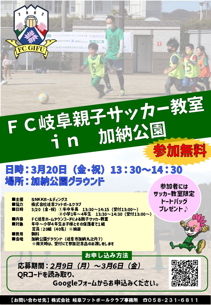 内容:FC岐阜ホームタウンコーチによる親子サッカー教室
