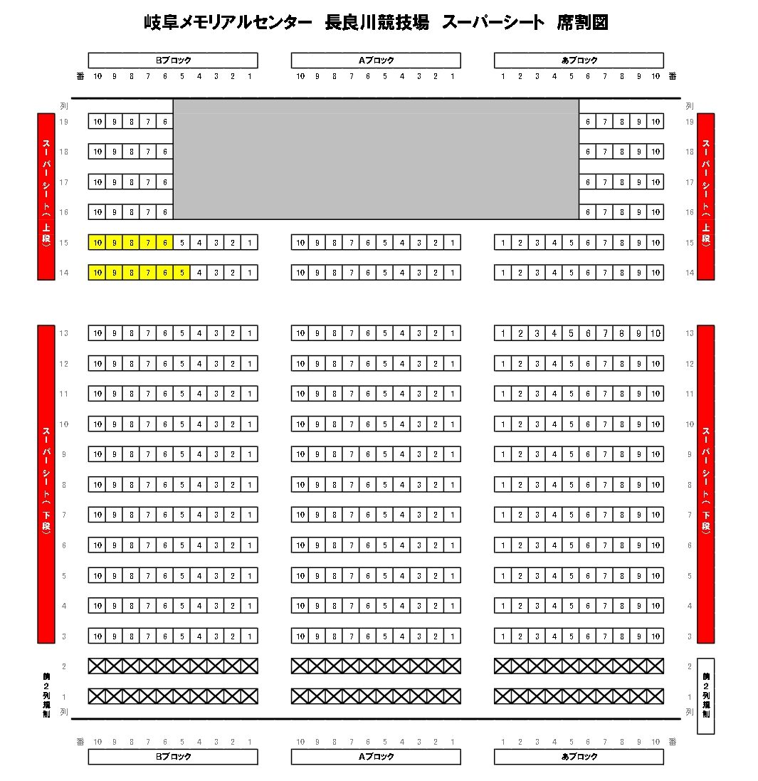 ※下図のうち黄色く塗られている席で観戦いただけますが、席の指定はできません。