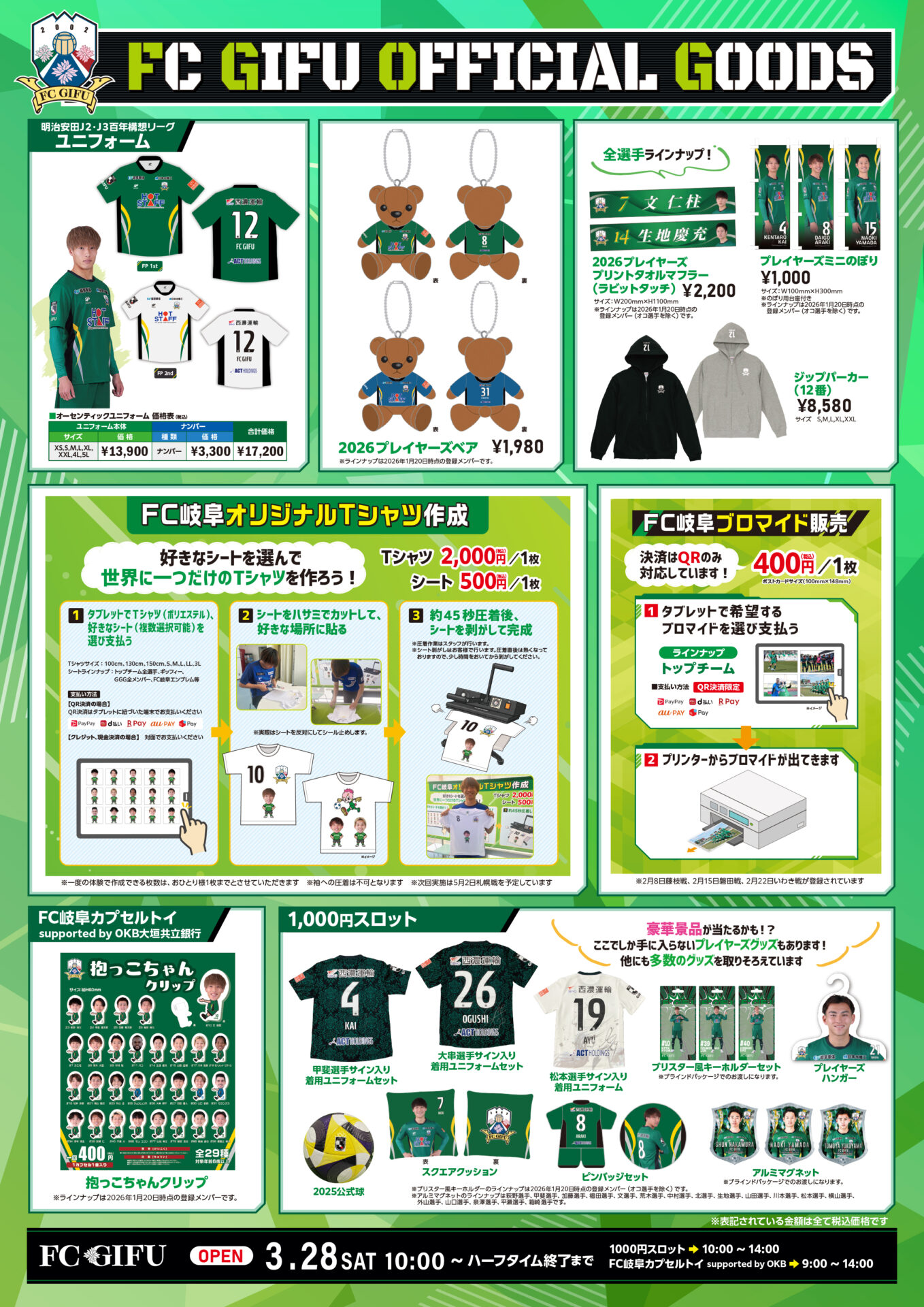 FC岐阜オフィシャルグッズショップにてFC岐阜グッズを3,000円(税込)以上お買い上げのお客様、先着100名様に「オリジナル選手カード」をプレゼント!