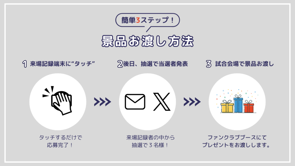 各試合で来場記録を付けることで、貴重な景品が当たるチャンス‼