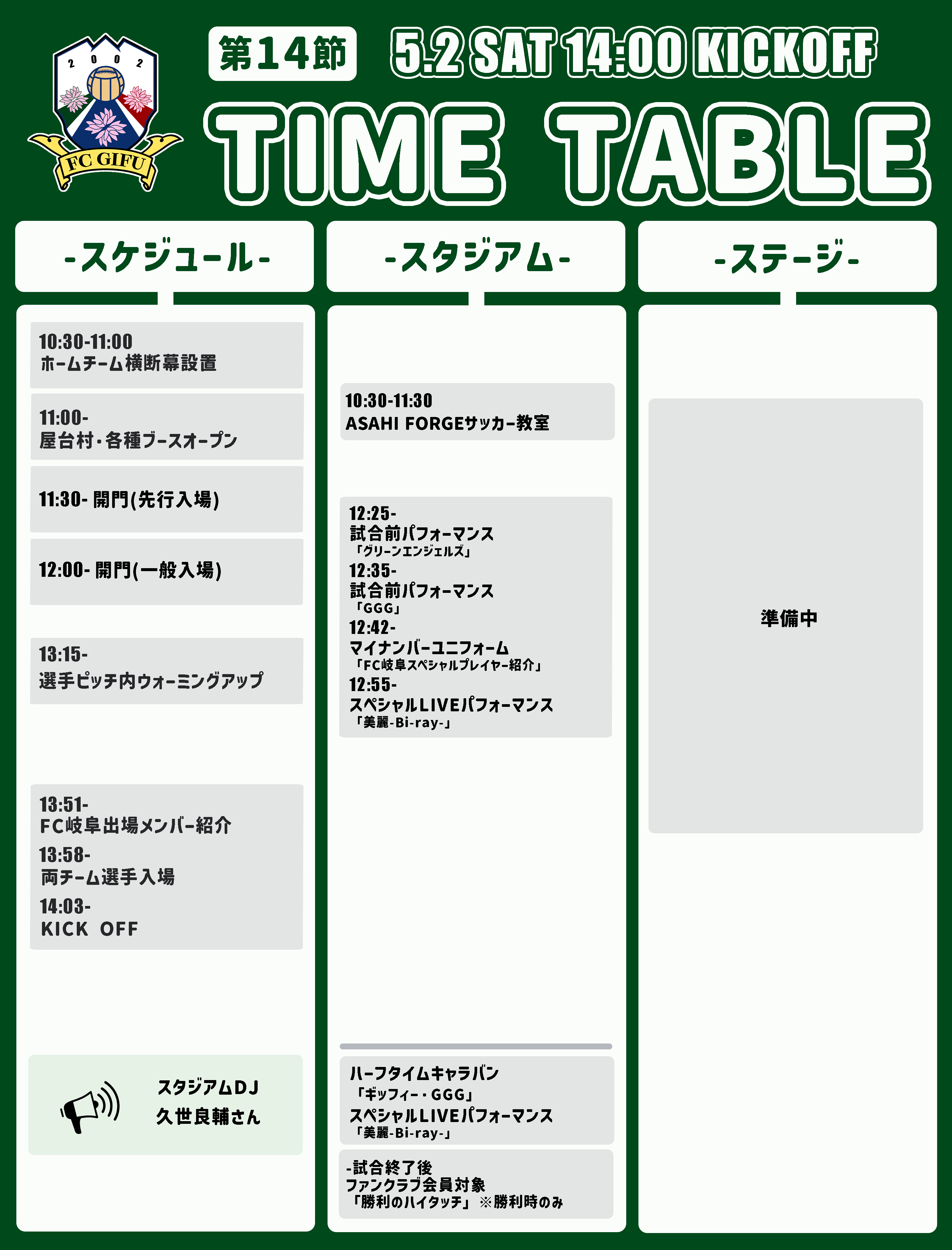 | スペシャルライブ | 12:55~・ハーフタイム(スタジアム) |