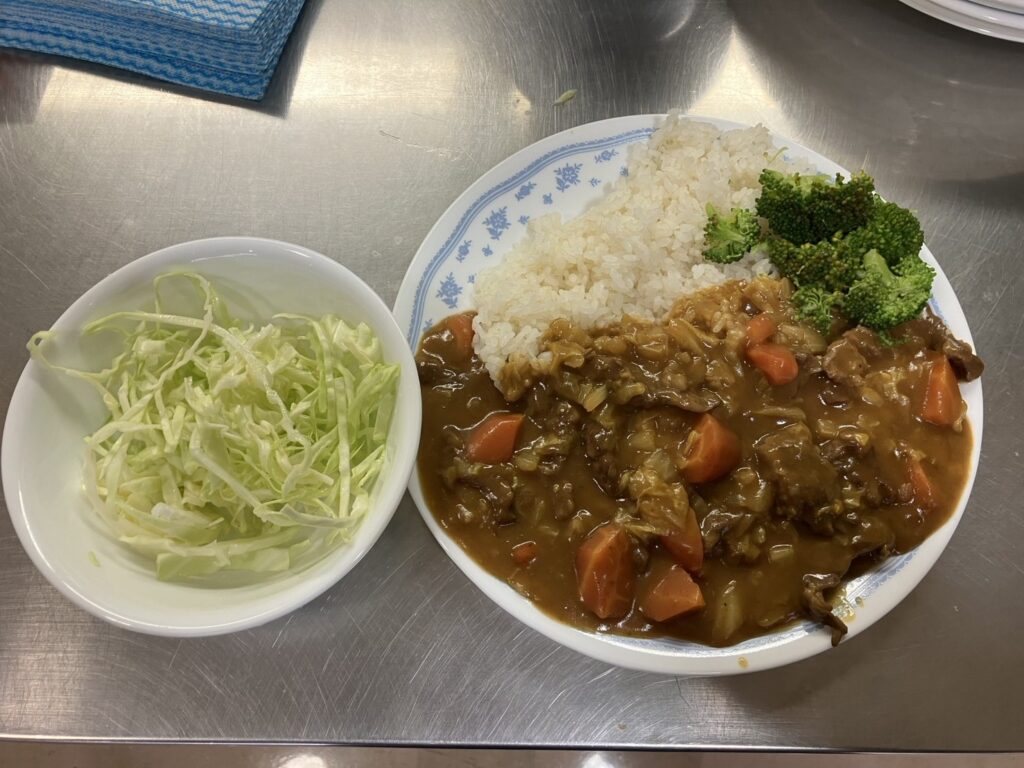 ▽メニューはカレーライスと千切りキャベツでした。