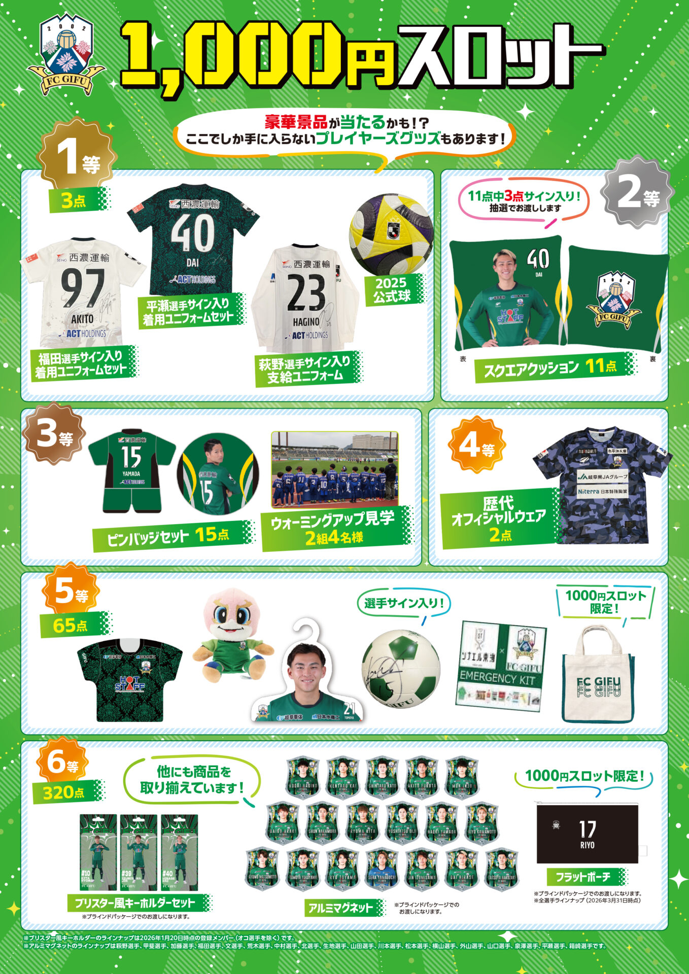 FC岐阜オフィシャルグッズショップにてFC岐阜グッズを3,000円(税込)以上お買い上げのお客様、先着100名様に「オリジナル選手カード」をプレゼント!
