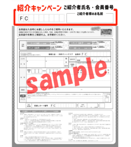 申込みの際は、お友達紹介キャンペーン専用の申込用紙に記入していただきます。ご希望の場合はお近くのスタッフにお声がけください。