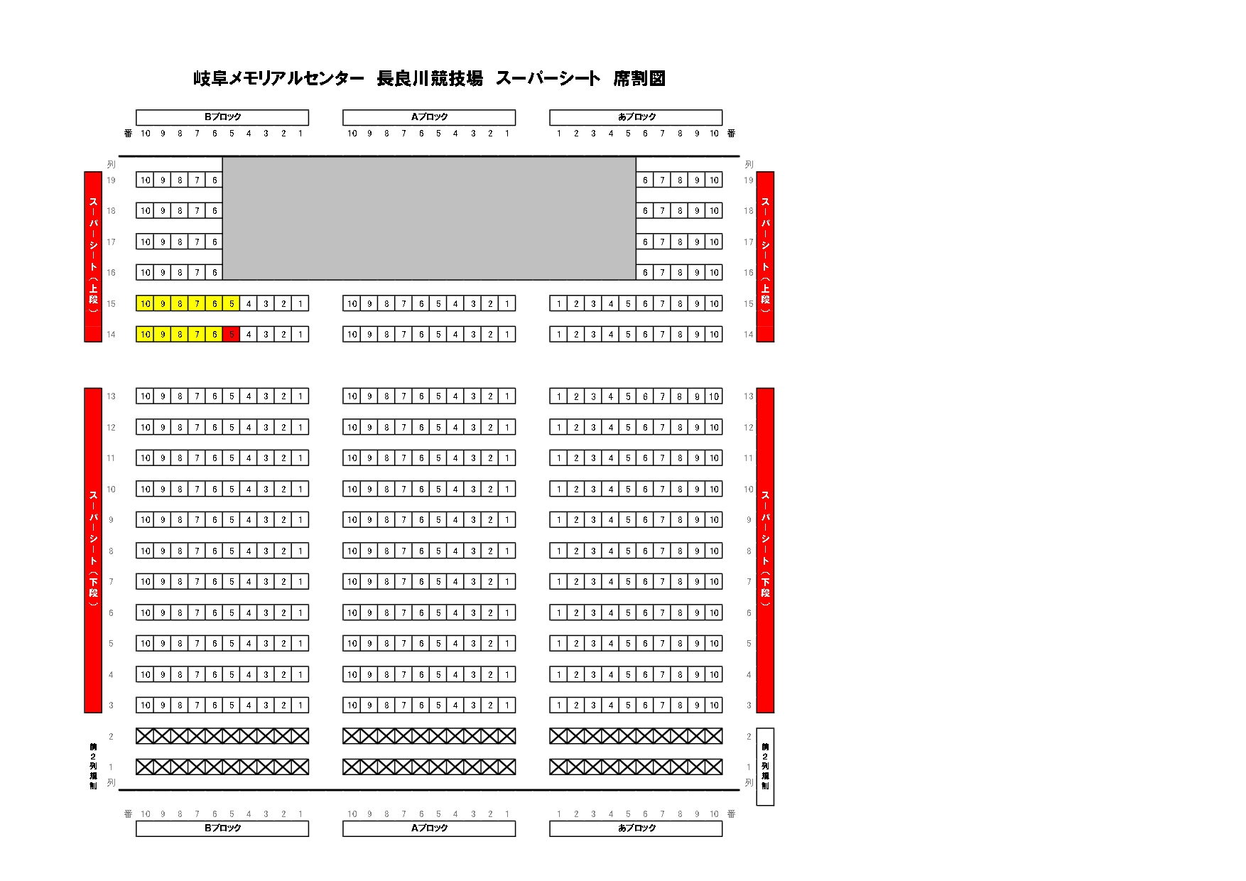 ※下図のうち黄色く塗られている席で観戦いただけますが、席の指定はできません。