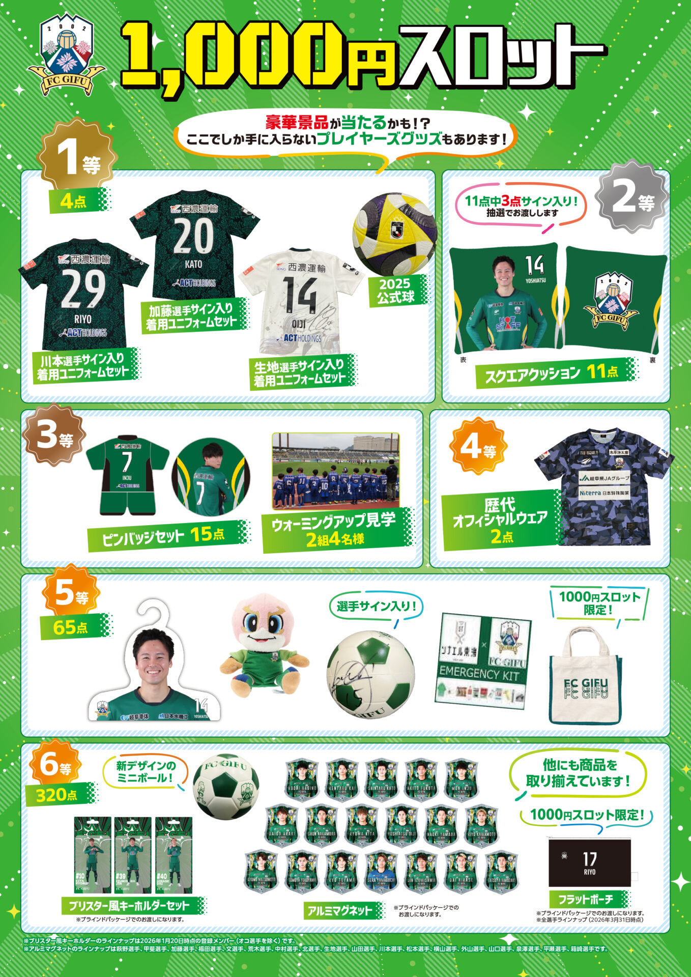 FC岐阜オフィシャルグッズショップにてFC岐阜グッズを3,000円(税込)以上お買い上げのお客様、先着100名様に「オリジナル選手カード」をプレゼント!
