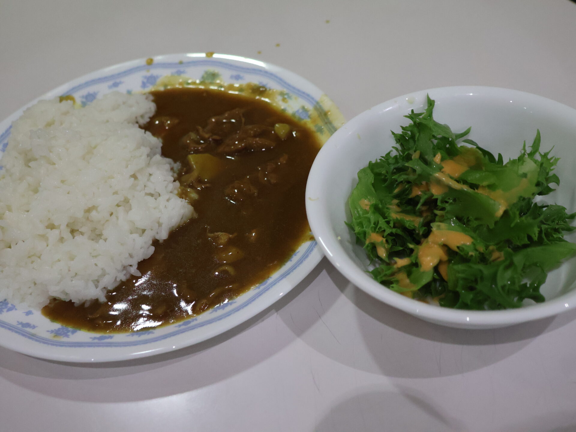 ▽メニューは、カレーライスと信長レタスのサラダでした。