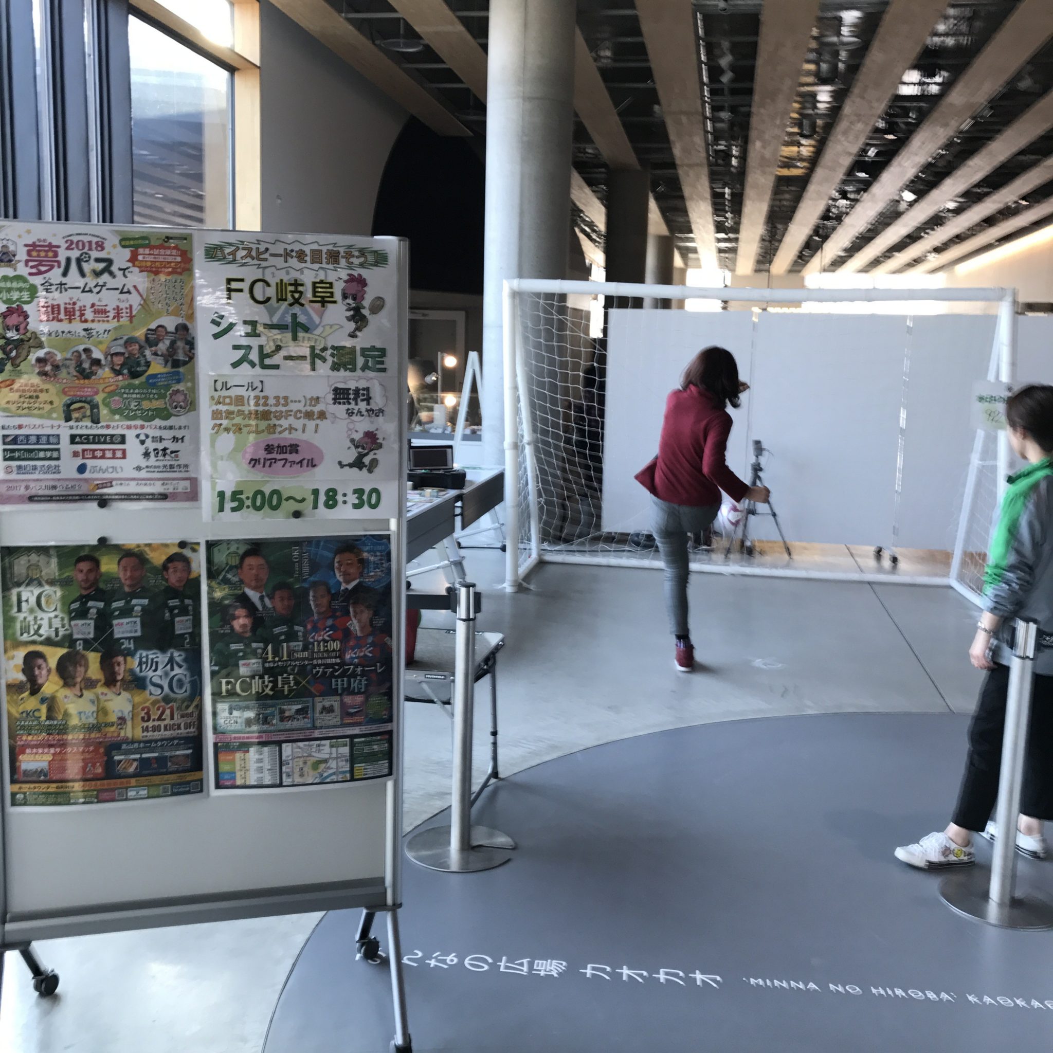イベントでは、3月12日~16日までFC岐阜写真展を開催。14日にはシュートスピード測定のブースと、FC岐阜選手のトークイベントが行われました。